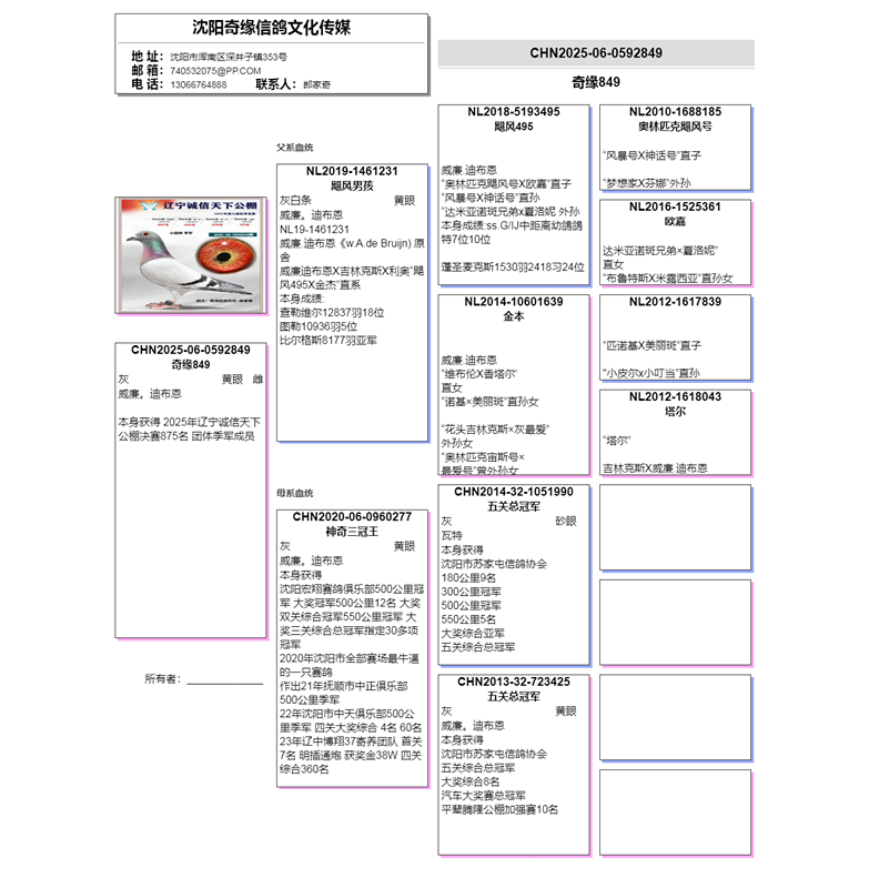 8、注明:本身有鸽会和公棚成绩的,是按着鸽主的记录和用网络查询为依据,没有奖状证书,仅供参考。