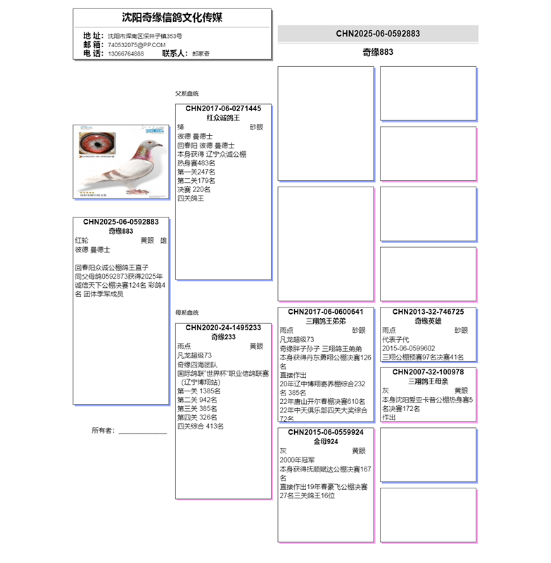 8、注明:本身有鸽会和公棚成绩的,是按着鸽主的记录和用网络查询为依据,没有奖状证书,仅供参考。