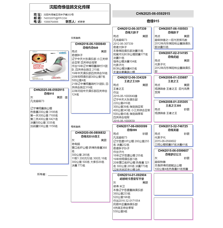 8、注明:本身有鸽会和公棚成绩的,是按着鸽主的记录和用网络查询为依据,没有奖状证书,仅供参考。