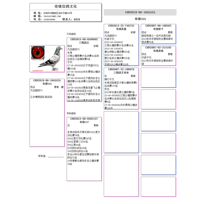 8、注明:本身有鸽会和公棚成绩的,是按着鸽主的记录和用网络查询为依据,没有奖状证书,仅供参考。