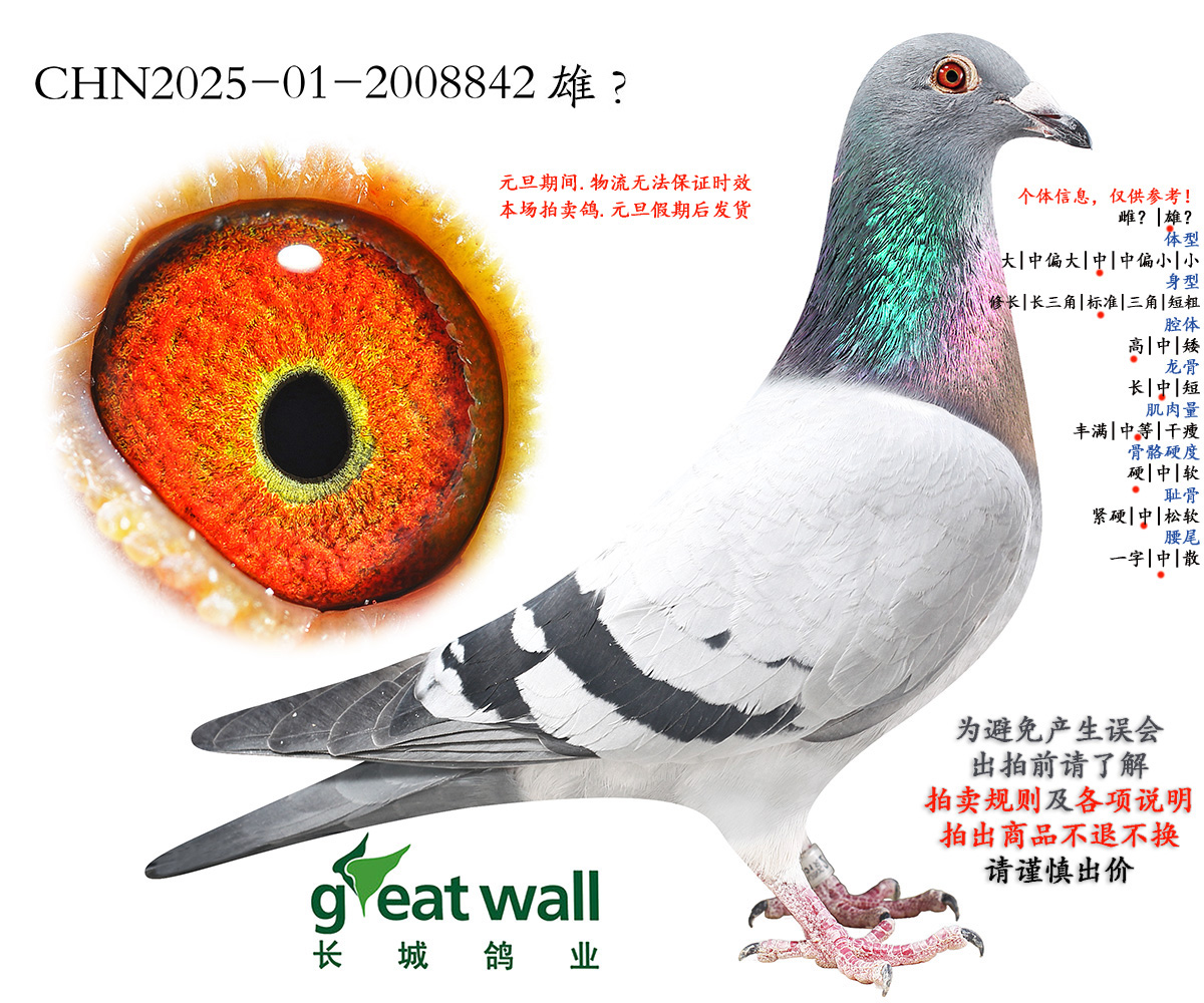 因拍卖鸽均是未做育过的种鸽或幼鸽,图内所标雌雄仅供参考,实际性别已实物为准。