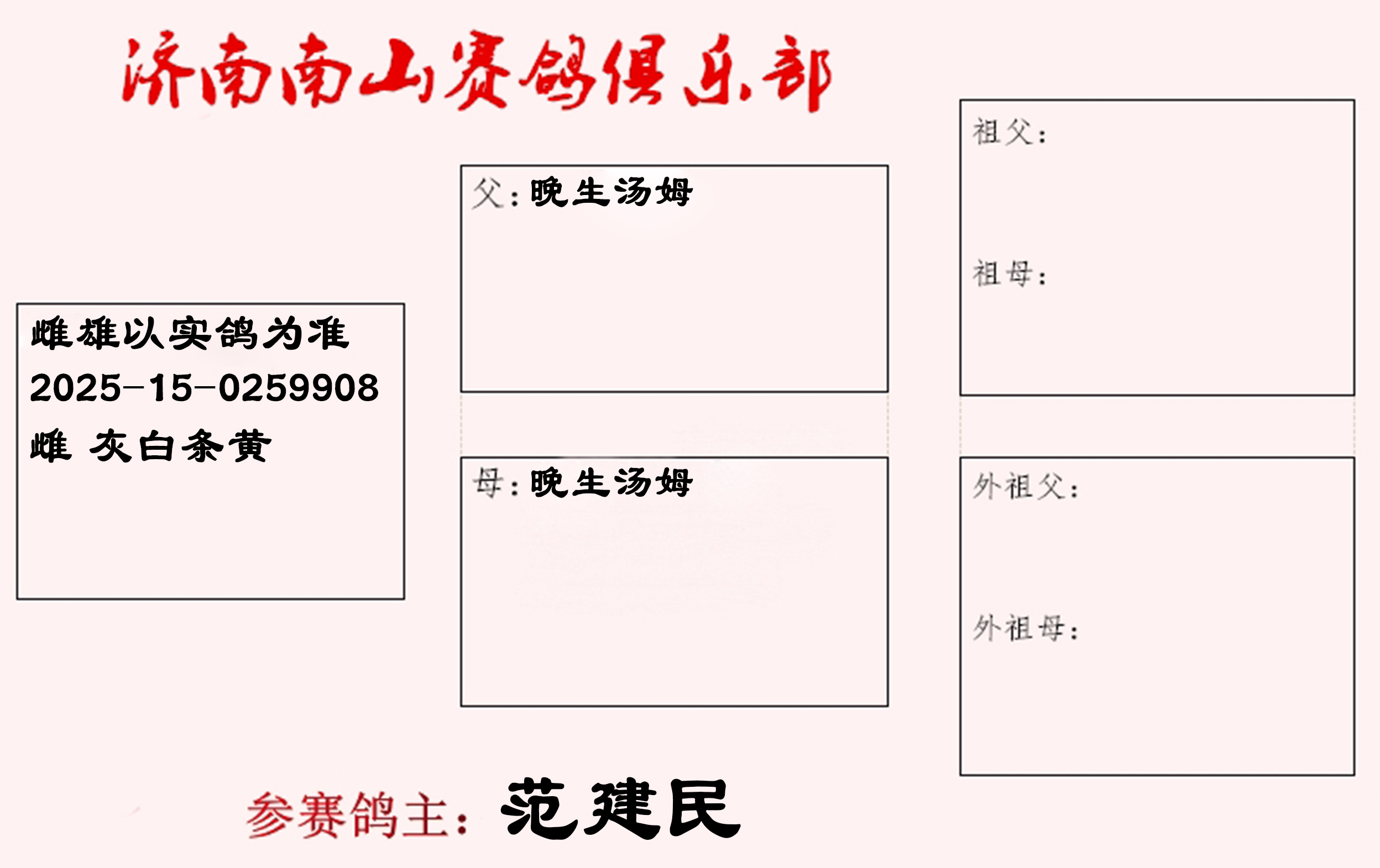 | 1635528 | 500公里决赛17名,四关综合鸽王14名 | ¥1000元 | 0次 |