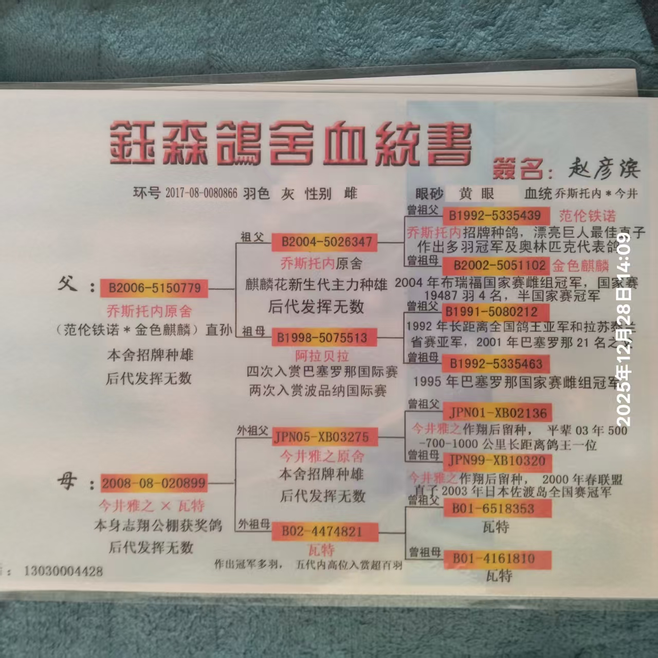上传血统书随鸽发出 没有上传的就是没有 介意勿拍