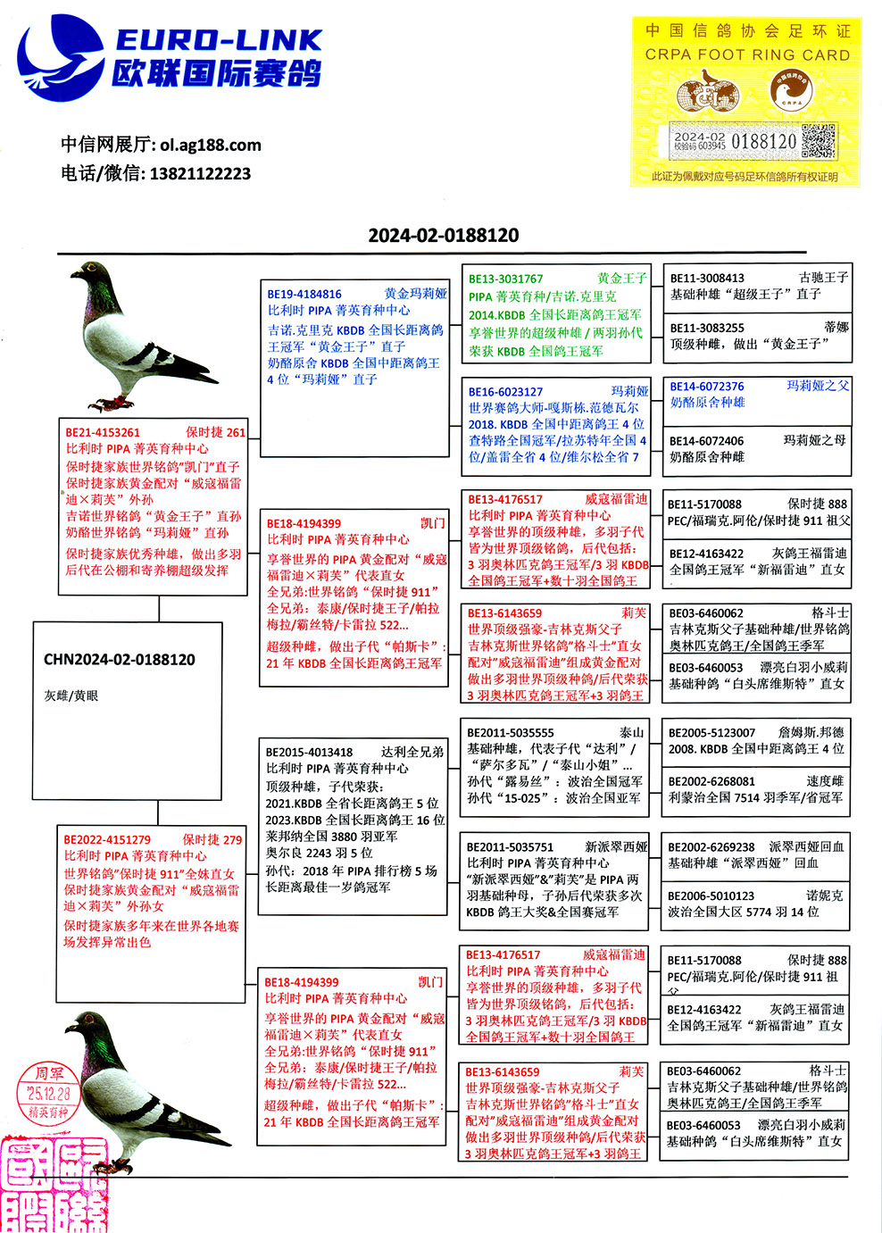 1636460 最佳基特尔家族全国鸽王直子 ¥6800元 9次