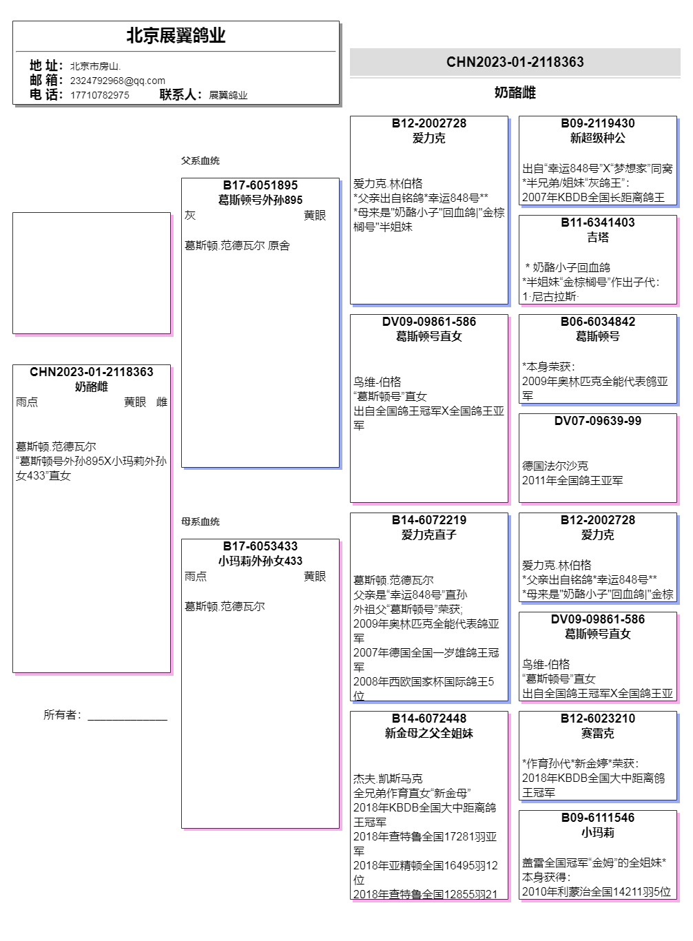 - 当前查看拍卖鸽:(葛斯顿号外孙x小玛莉外孙女)直女836