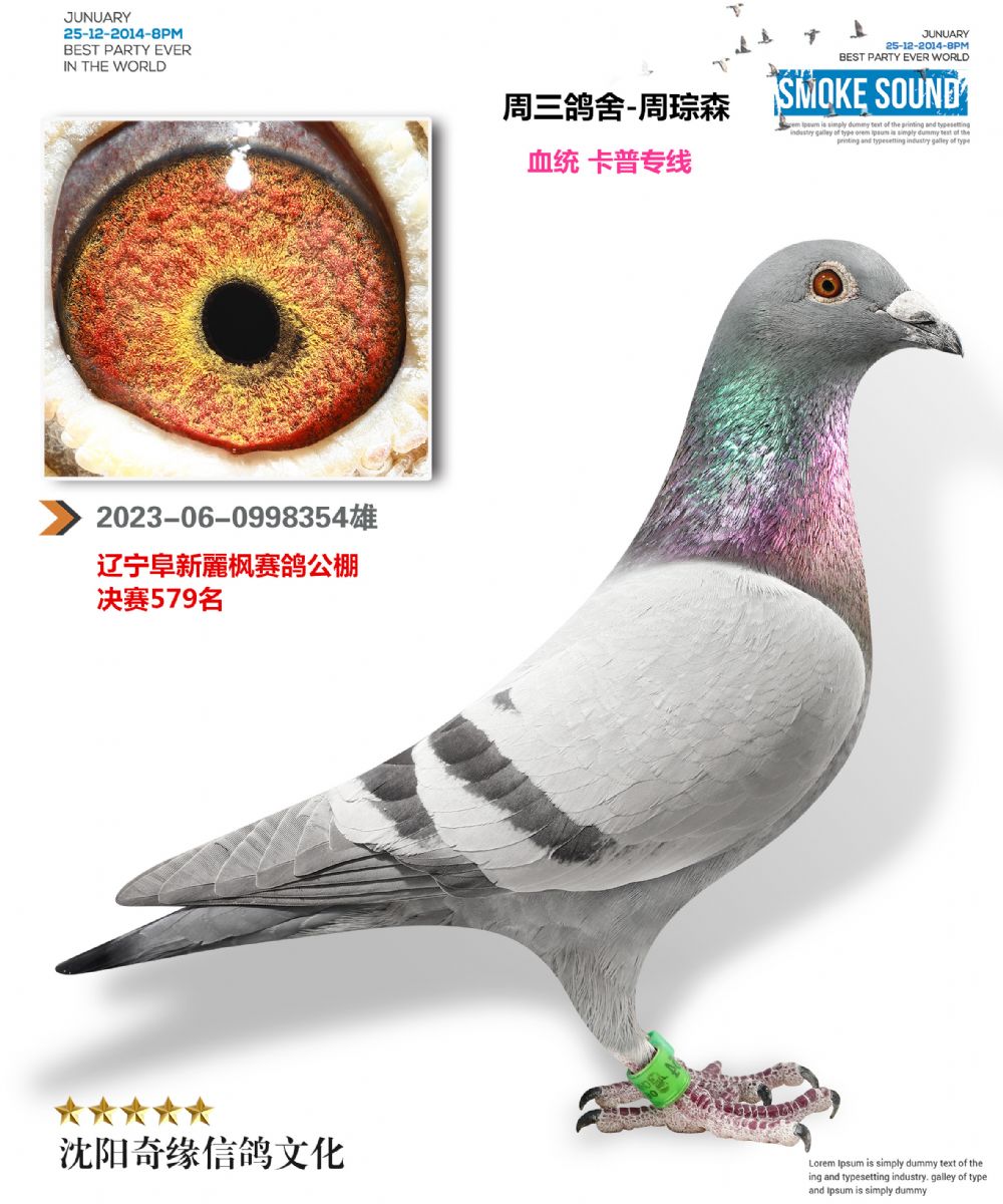 2、注明:鸽子在照片制作中,通常会使用Photoshop的图片翻转功能,造成视觉上足环位置的颠倒(左右脚互换),鸽子足环的位置以实物为准;