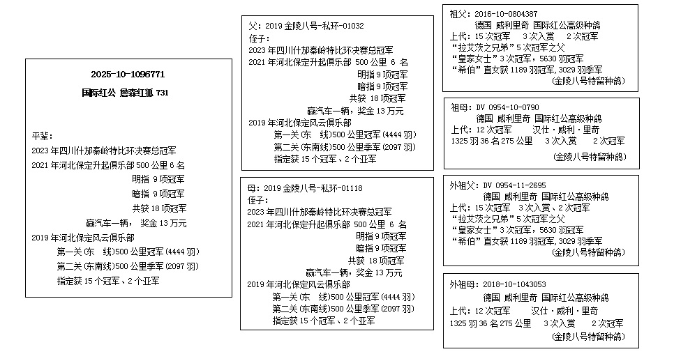 - 血统:德国 威利里奇“国际红公 詹森红狐731”
