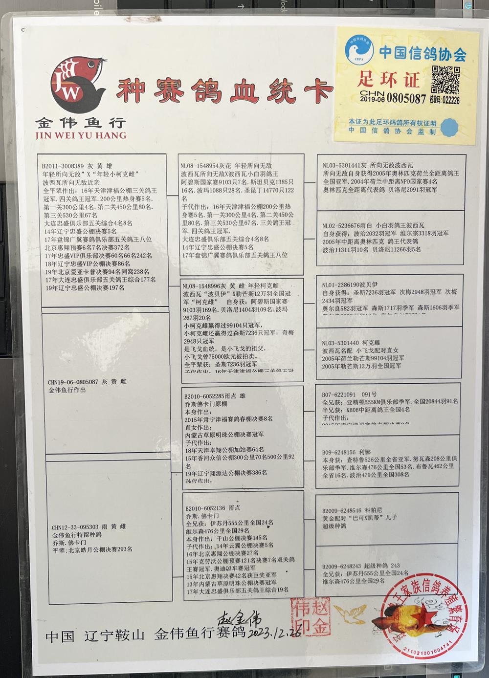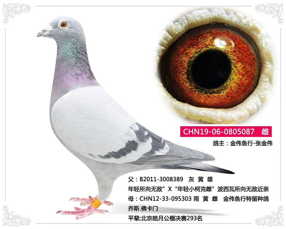 母:CHN12-33-095303 雨 黄 雌 金伟鱼行特留种鸽