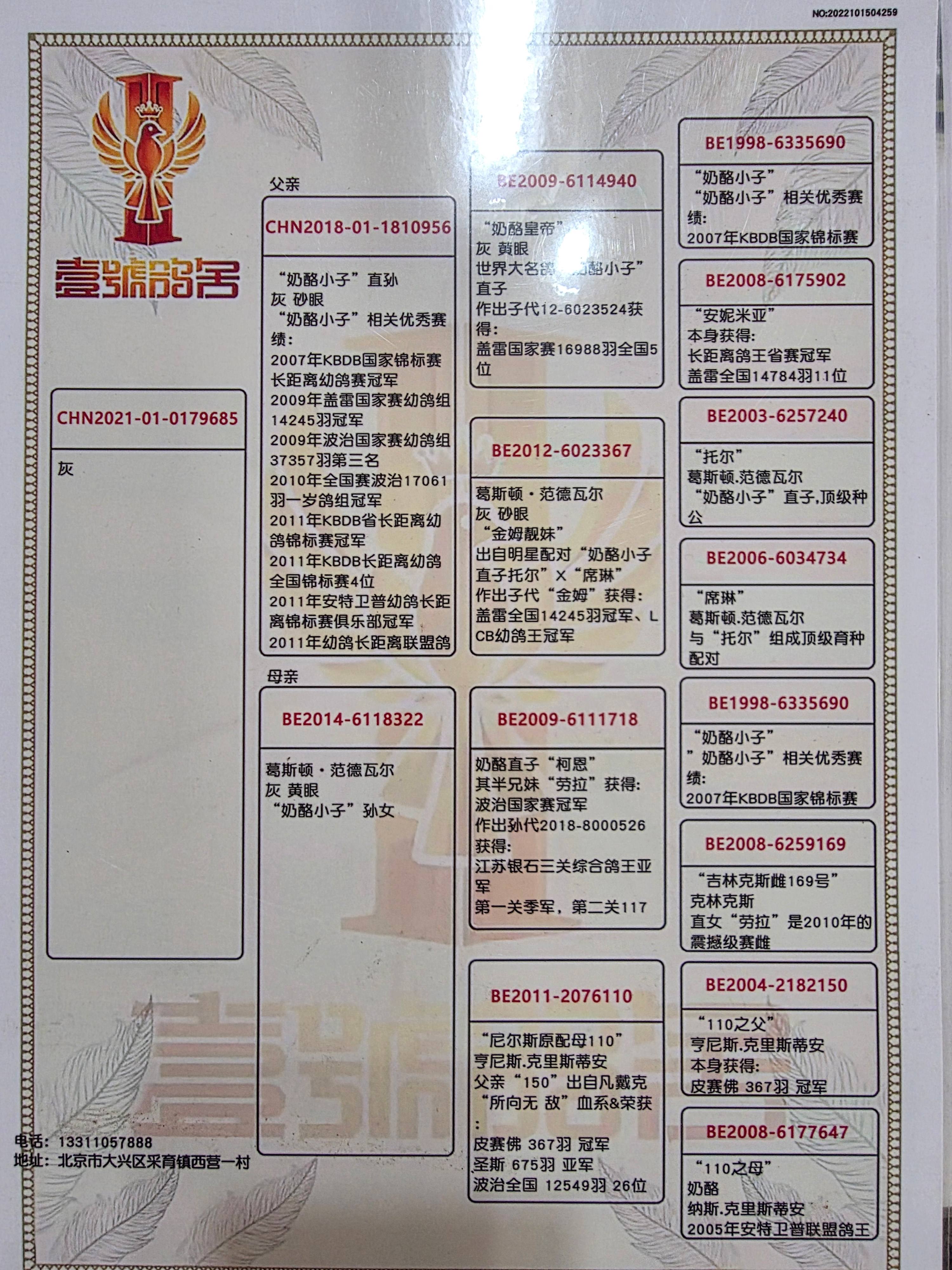 1637594 血统:好红兄弟孙代-奥林匹克006直系-迪克-凡登布克 ¥400元 2次