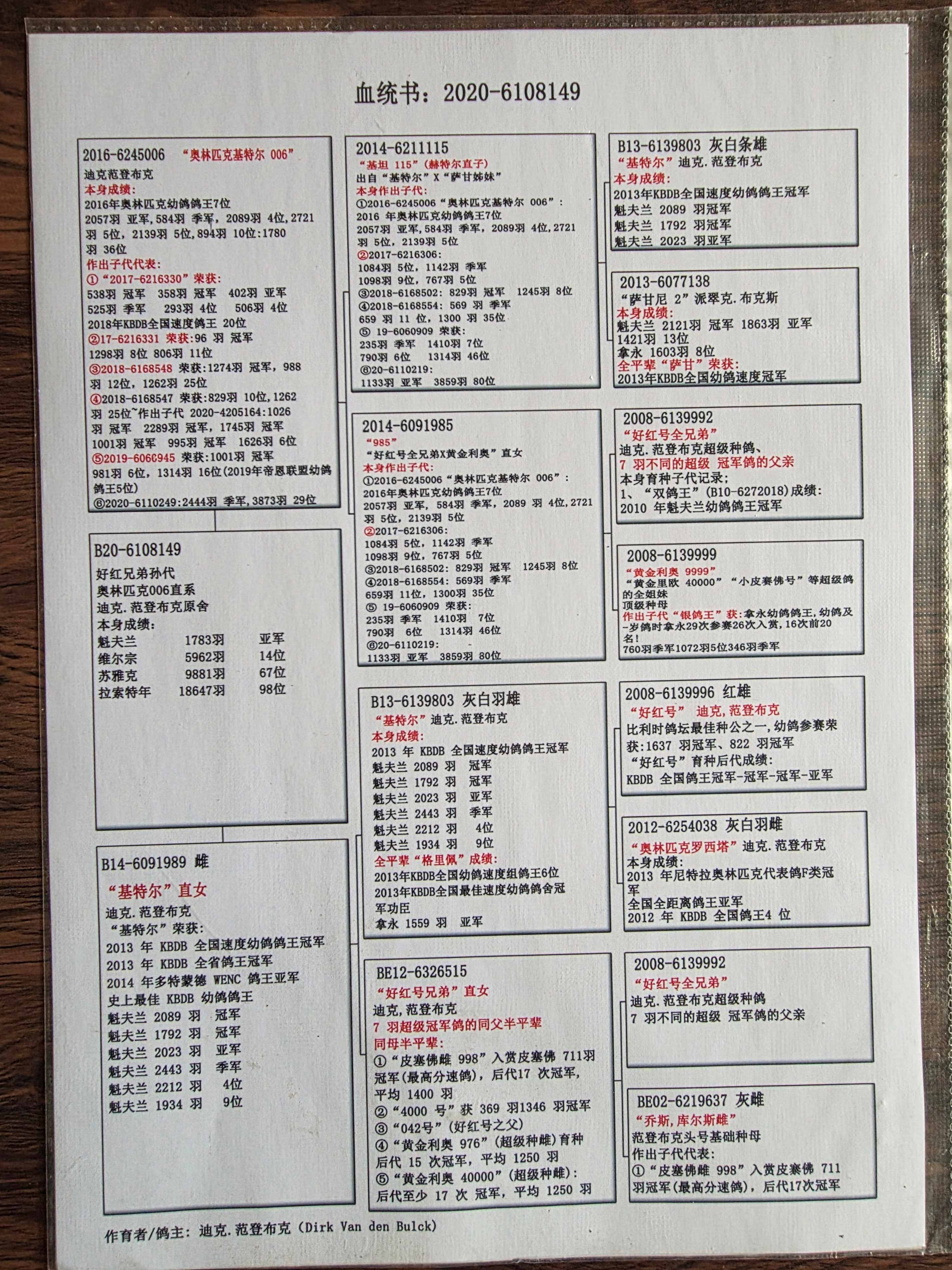 血统:好红兄弟孙代-奥林匹克006直系-迪克-凡登布克