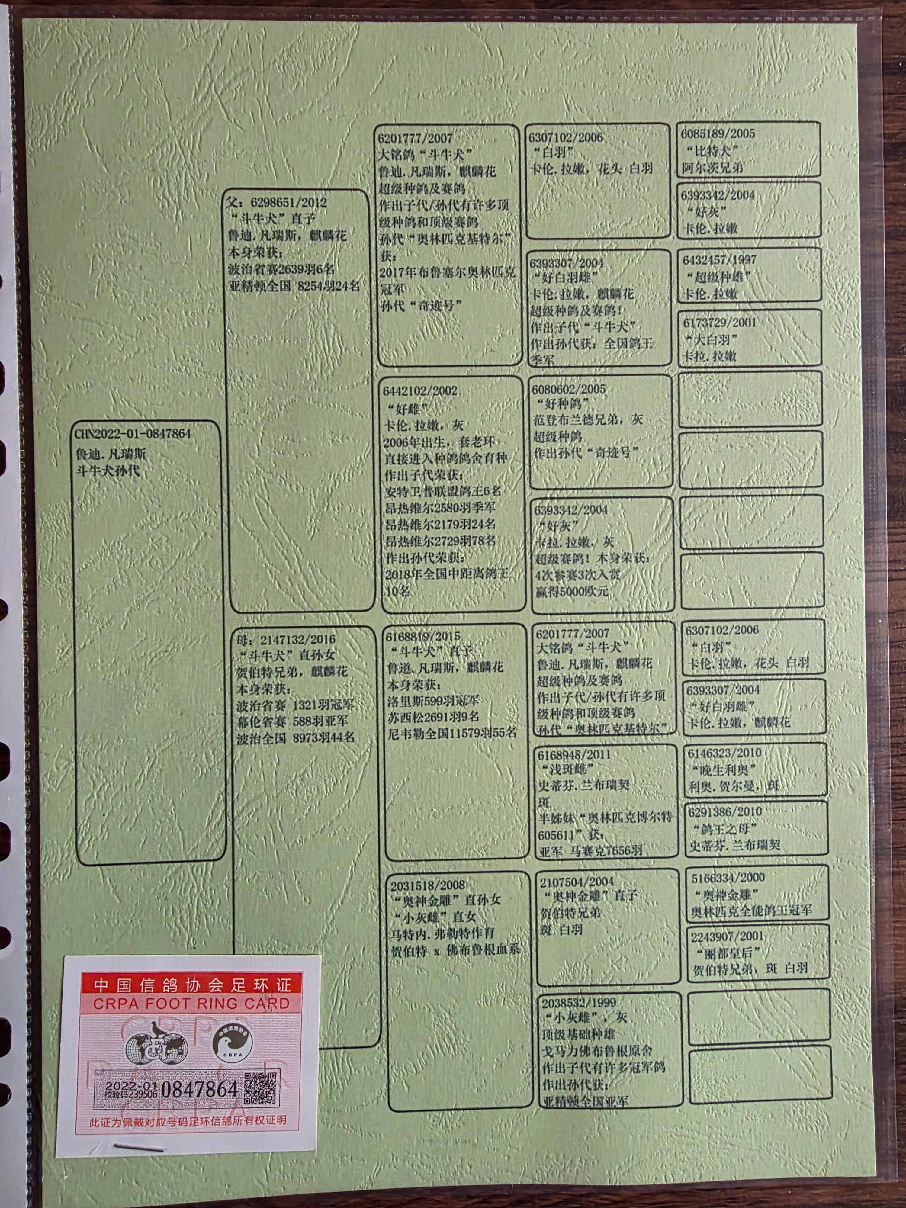 1637586 血统:911孙代史蒂芬·兰布瑞契合作育种 ¥400元 2次