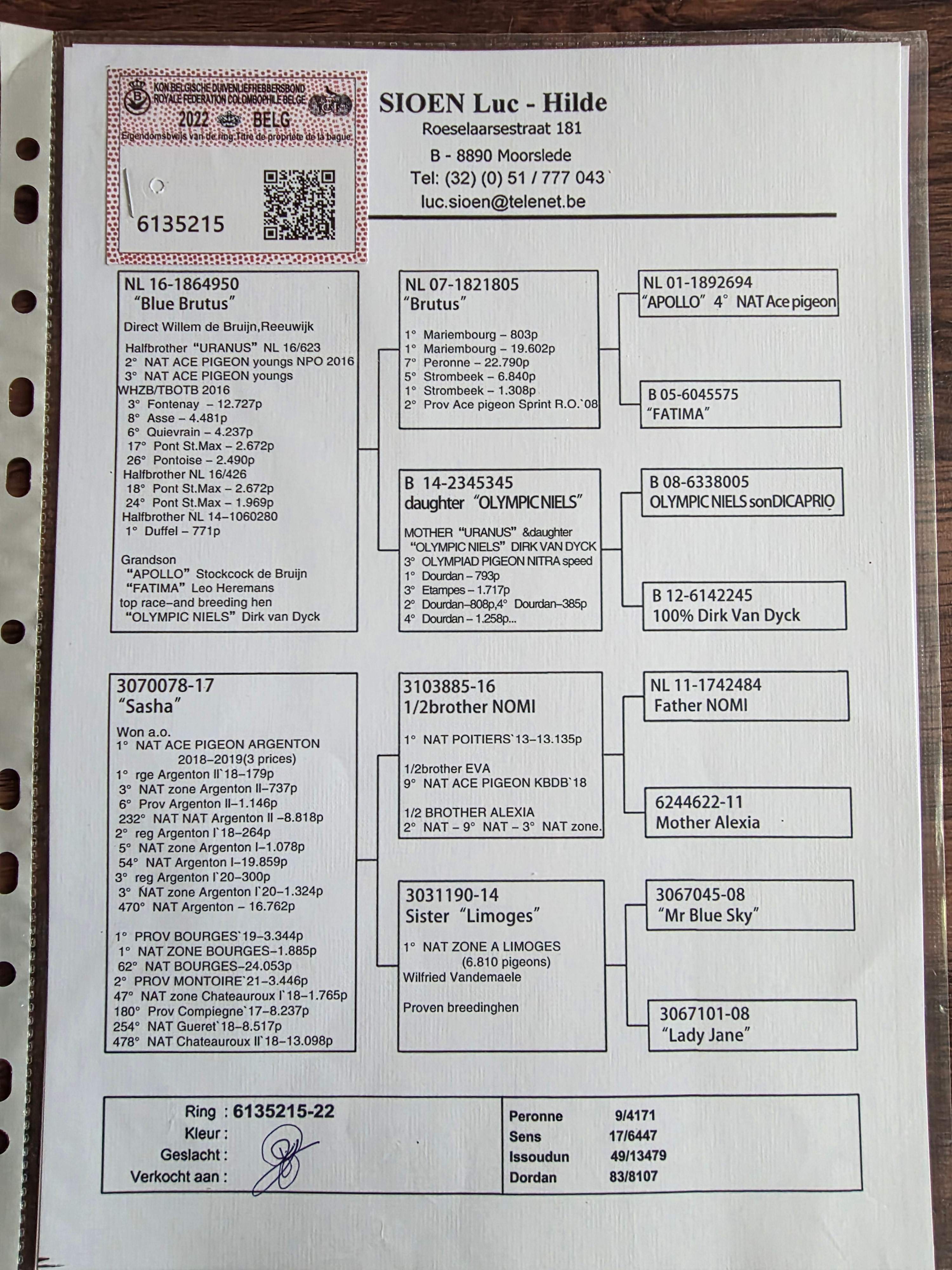 - 当前查看拍卖鸽:血统:“布鲁特斯直子X伊娃全兄弟直女”路