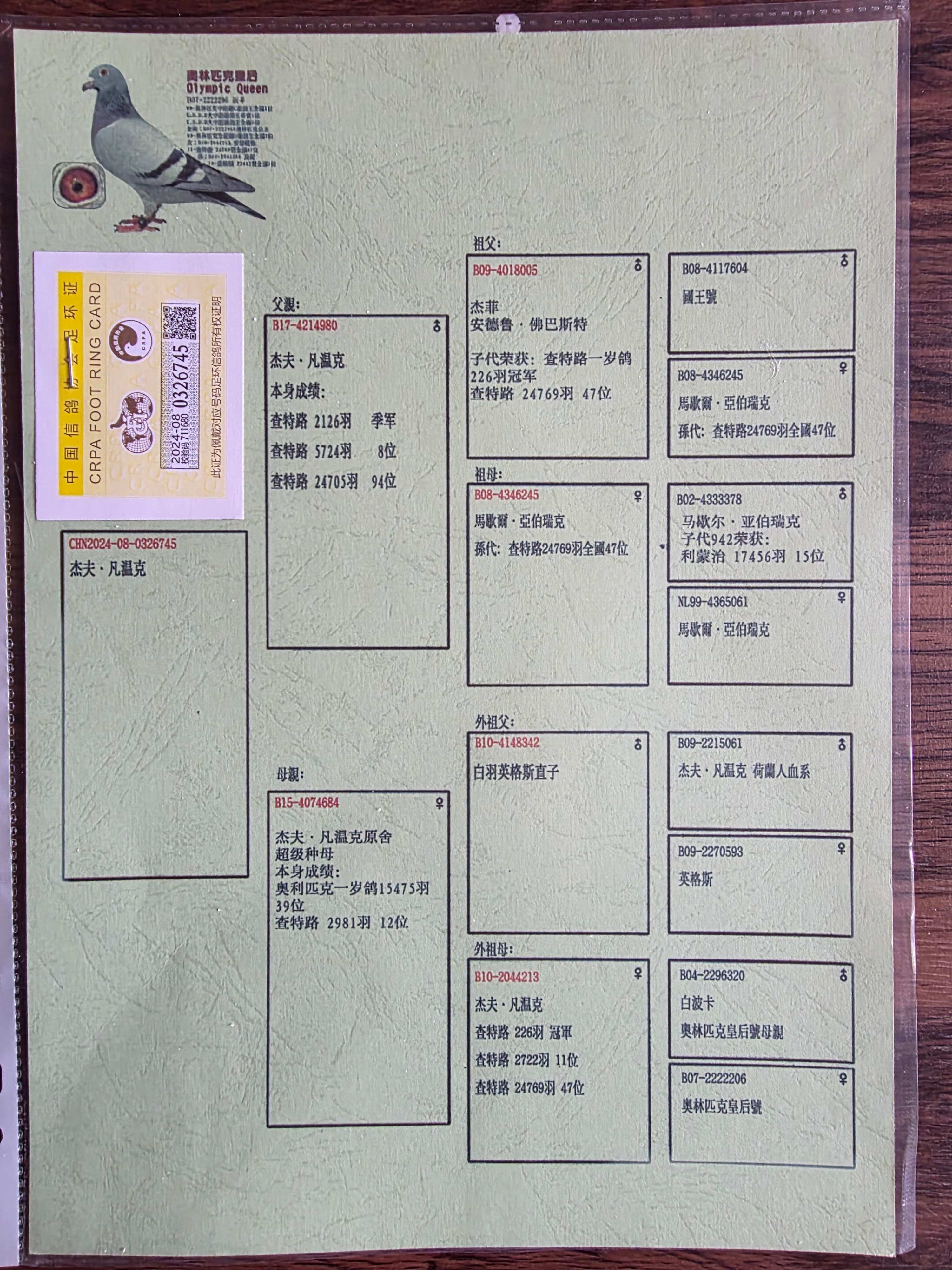 1637639 血统:利奥·贺尔曼斯利奥轩·赛鸽舍“杨”曾孙代 ¥200元 1次