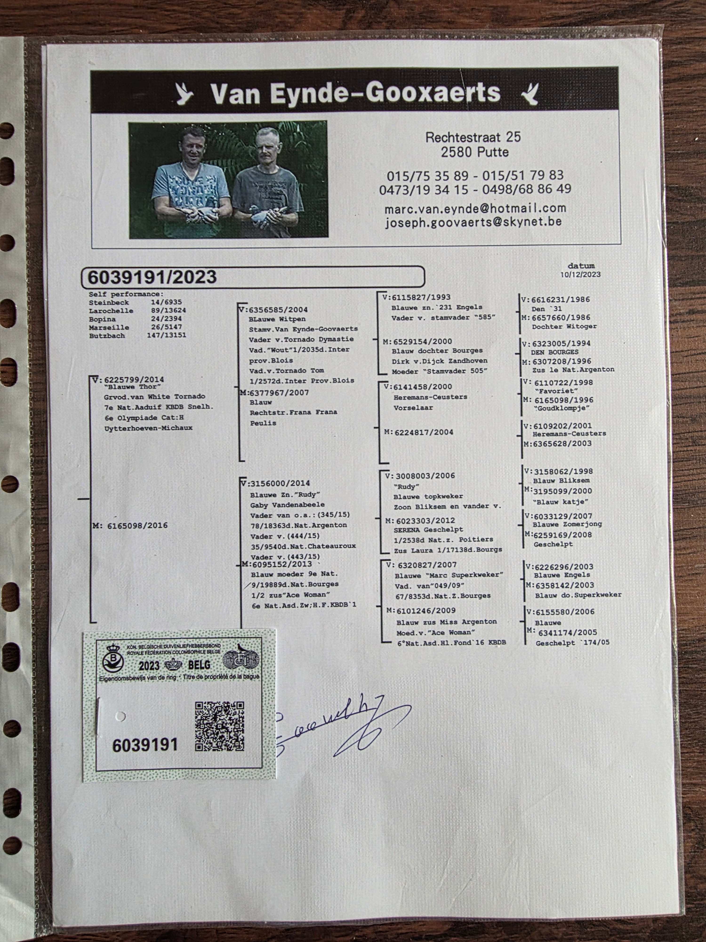 - 当前查看拍卖鸽:血统:凡艾登·古瓦特原舍