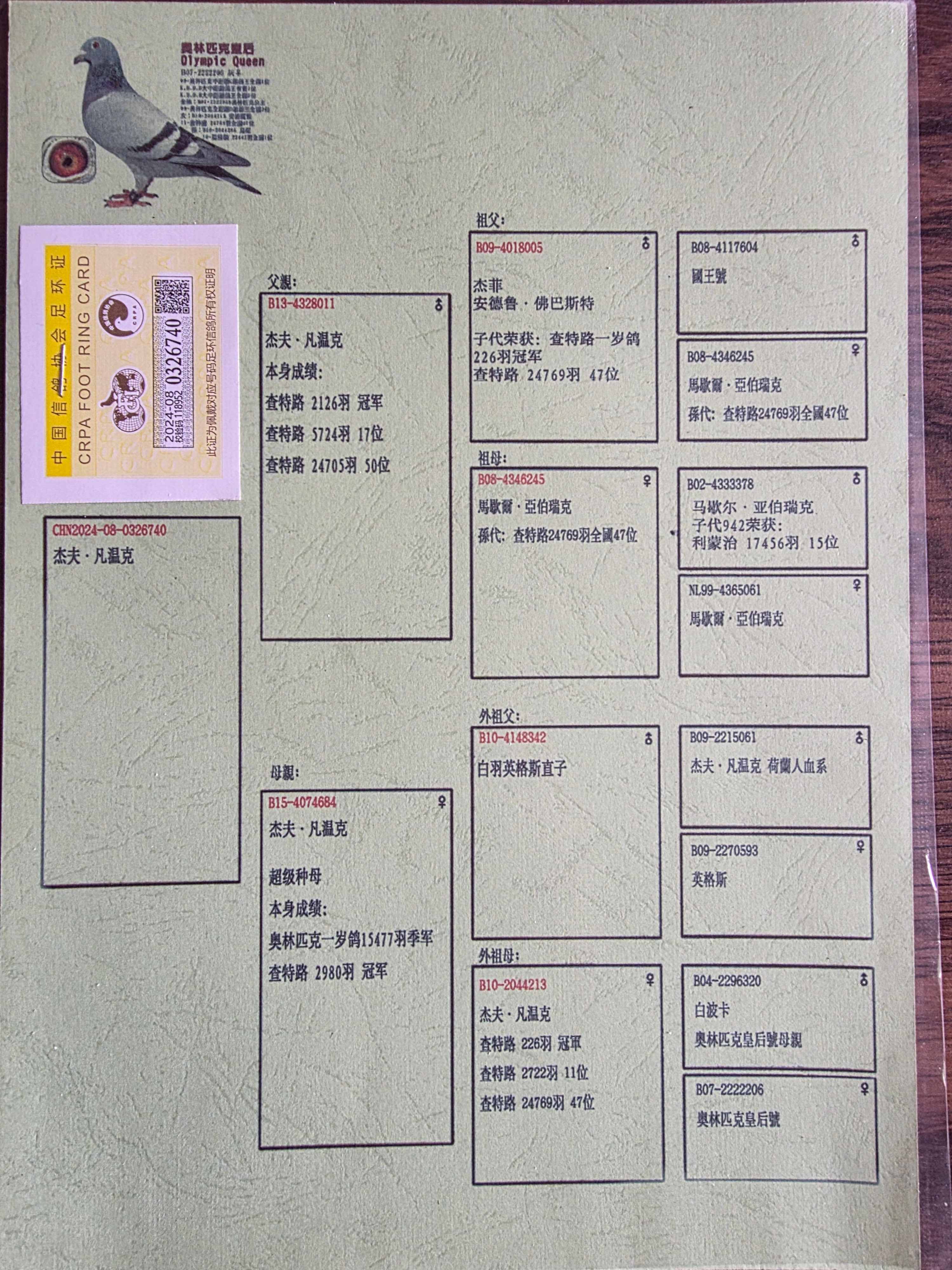 1637639 血统:利奥·贺尔曼斯利奥轩·赛鸽舍“杨”曾孙代 ¥200元 1次