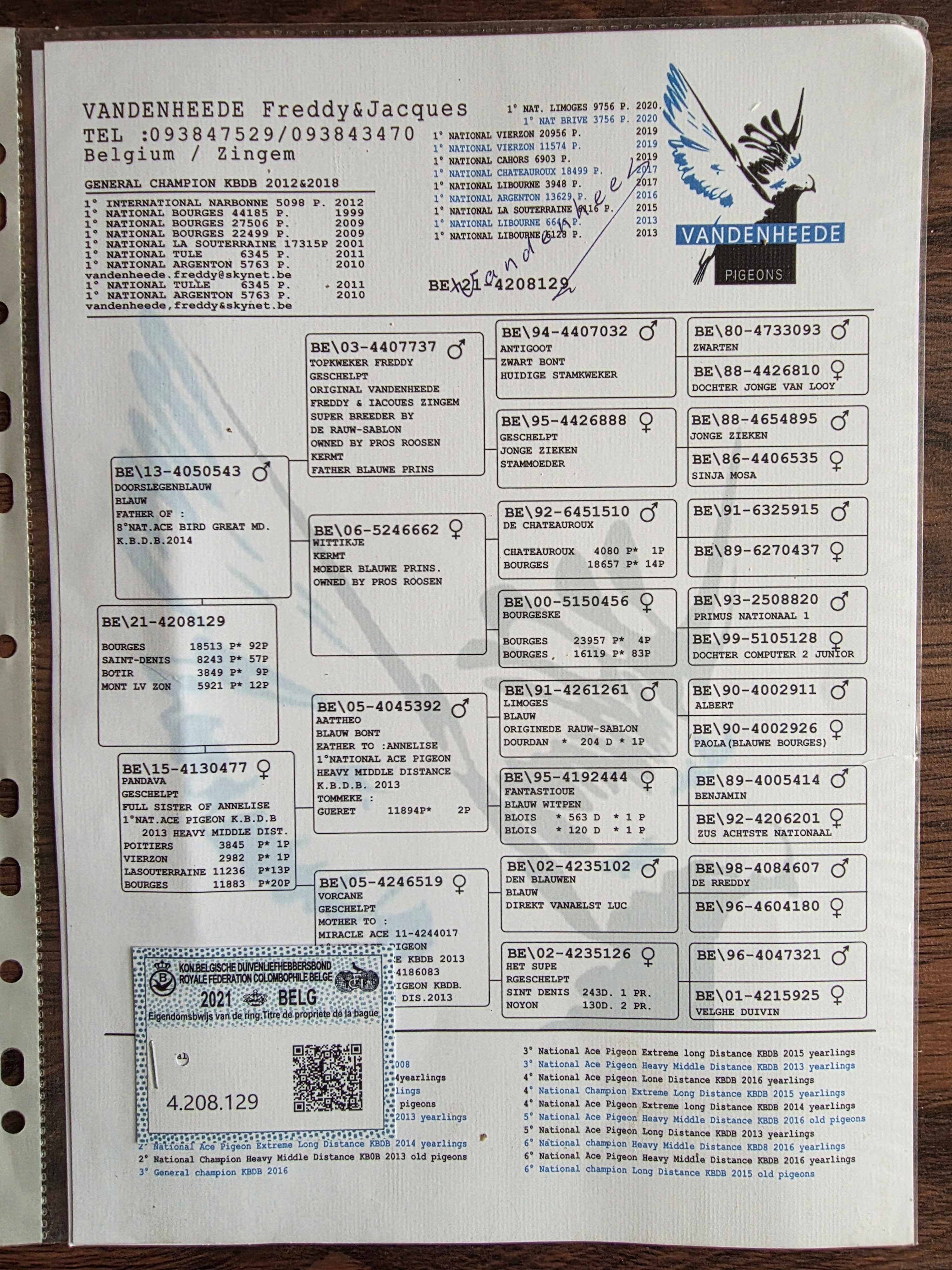 1637655 血统:“利奥·贺尔曼斯-利奥轩·赛鸽舍新罗西X杨回血 ¥200元 1次