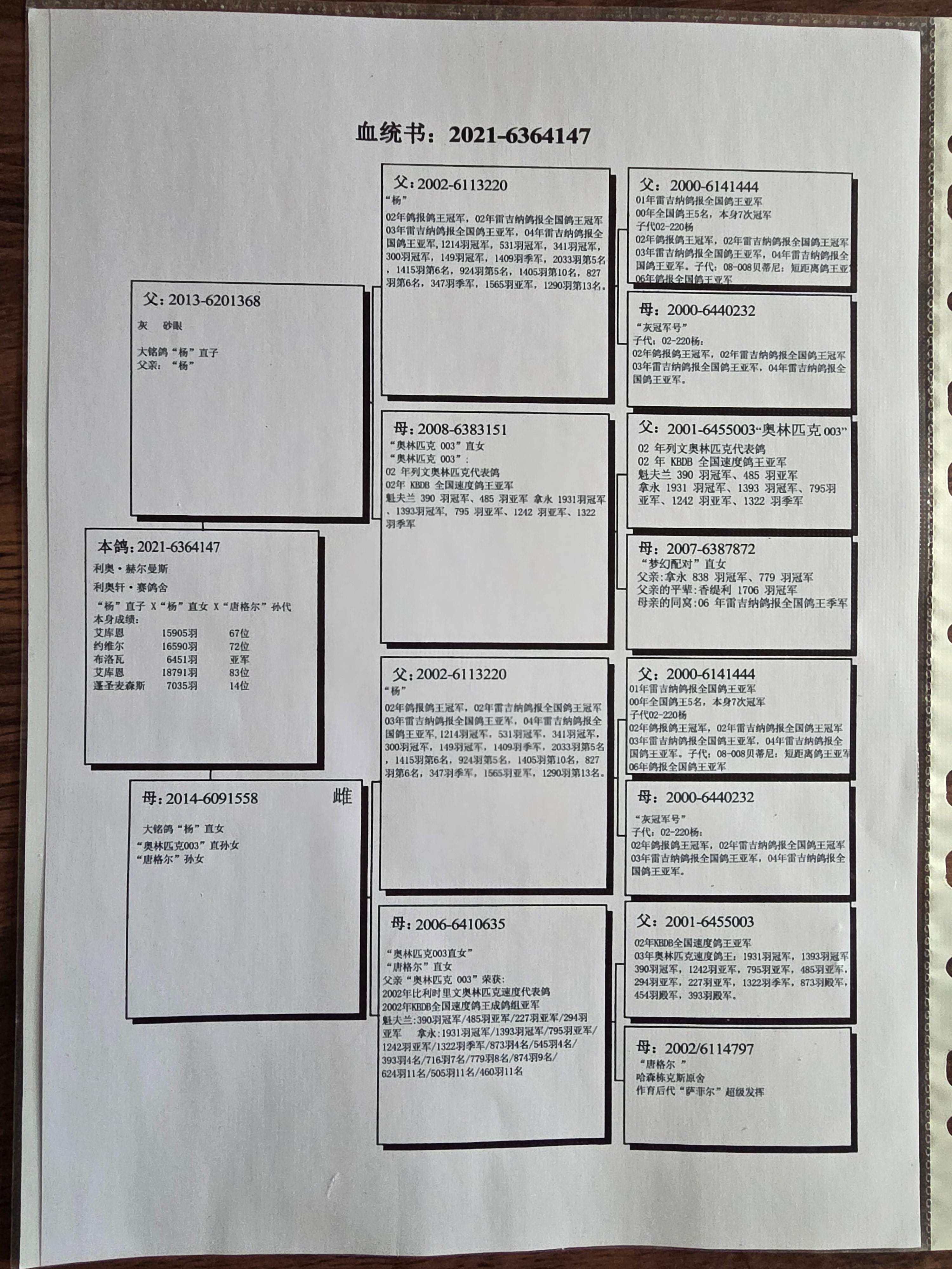 1637655 血统:“利奥·贺尔曼斯-利奥轩·赛鸽舍新罗西X杨回血 ¥200元 1次
