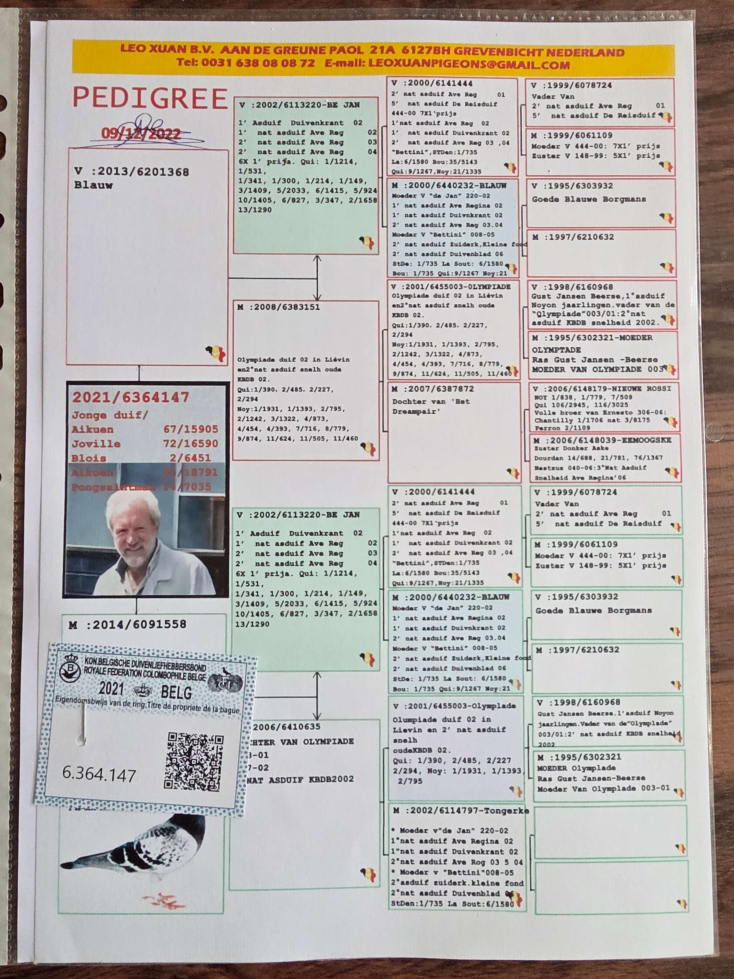 血统:利奥·赫尔曼斯利奥轩·赛鸽舍