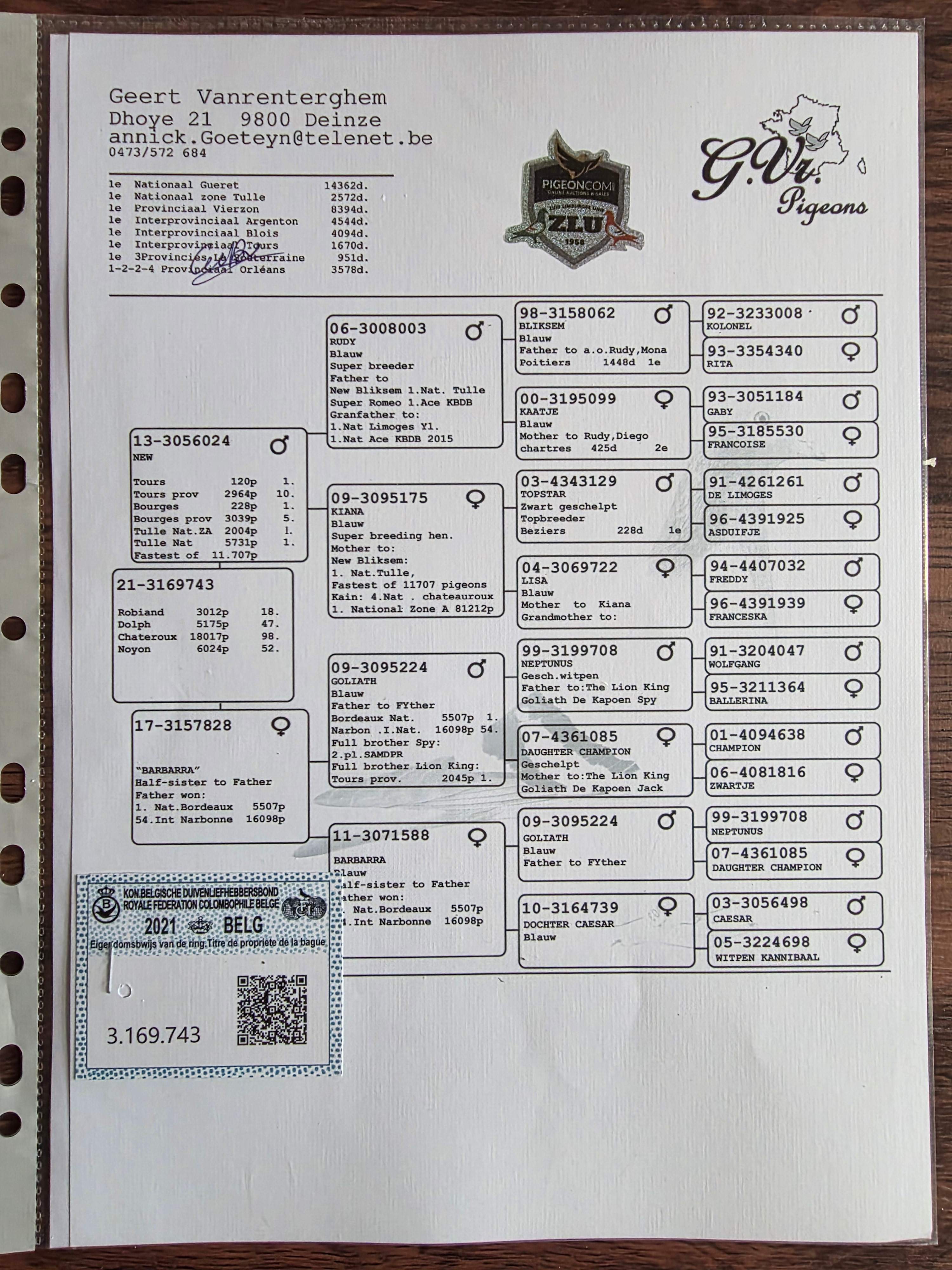 1637655 血统:“利奥·贺尔曼斯-利奥轩·赛鸽舍新罗西X杨回血 ¥200元 1次