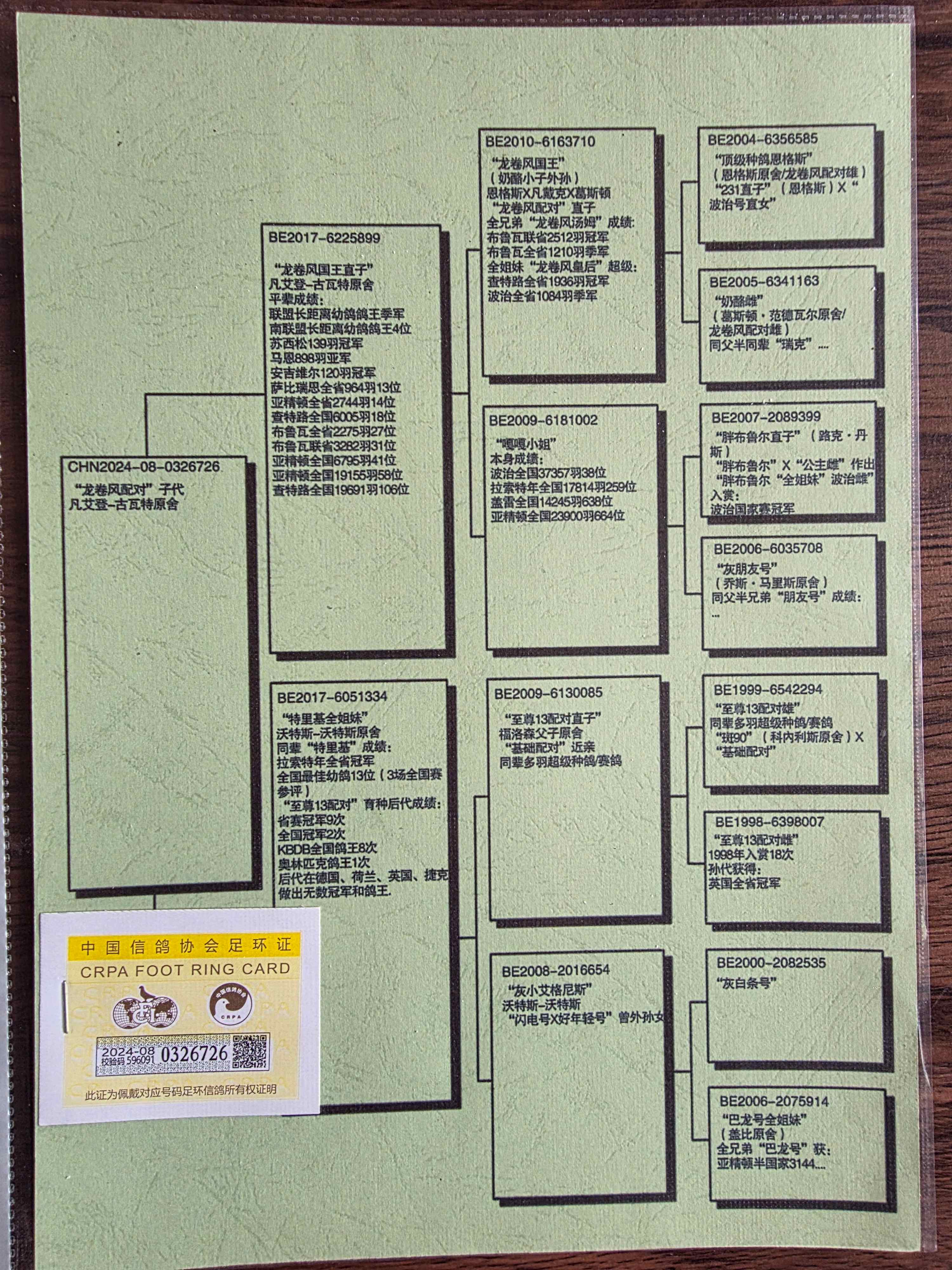 - 当前查看拍卖鸽:血统:“龙卷风配对”子代凡艾登一古瓦特原