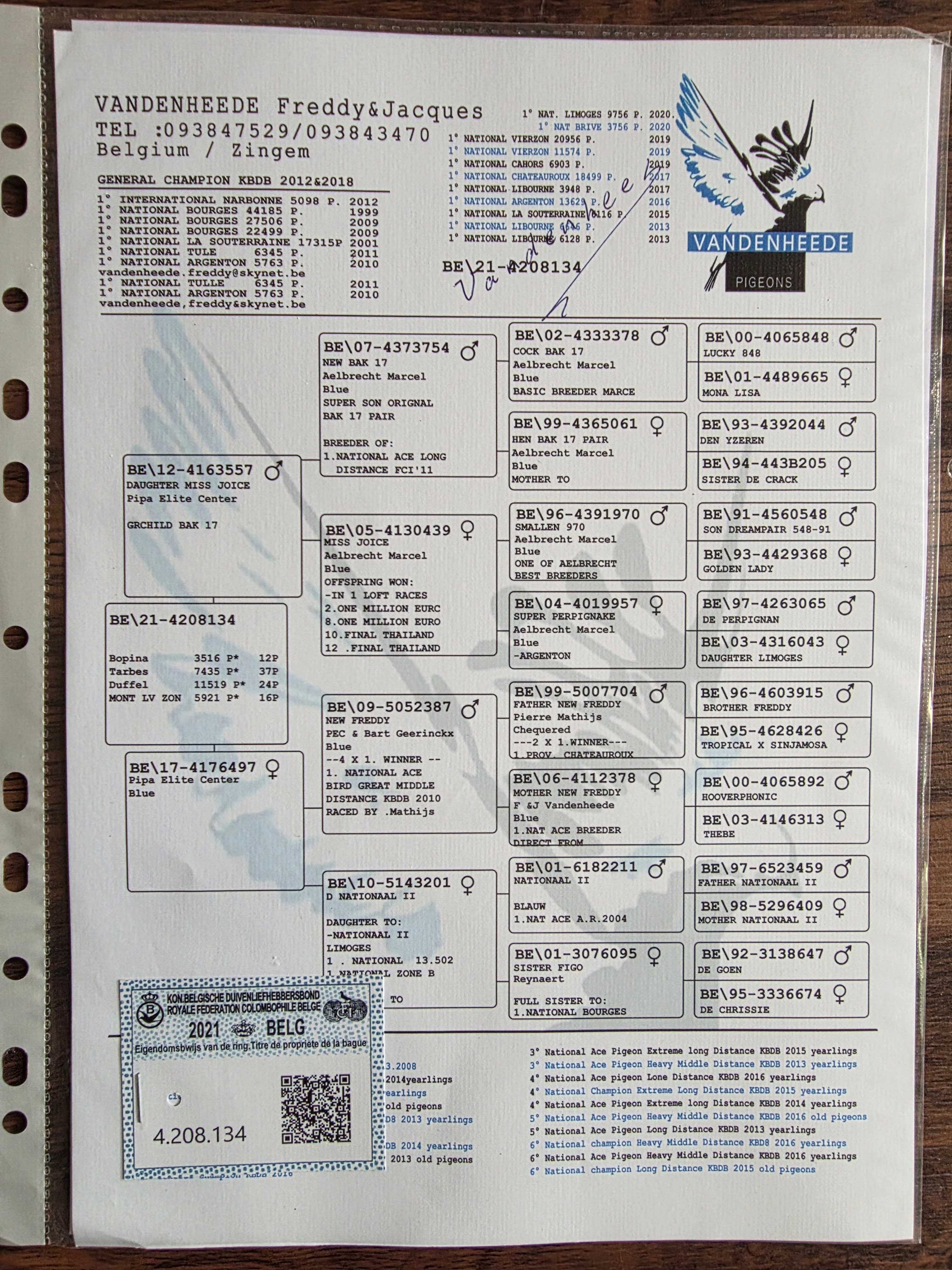 1637705 血统:杰夫·凡温克皇后号回血鸽-喜爱号孙代 ¥0元 0次