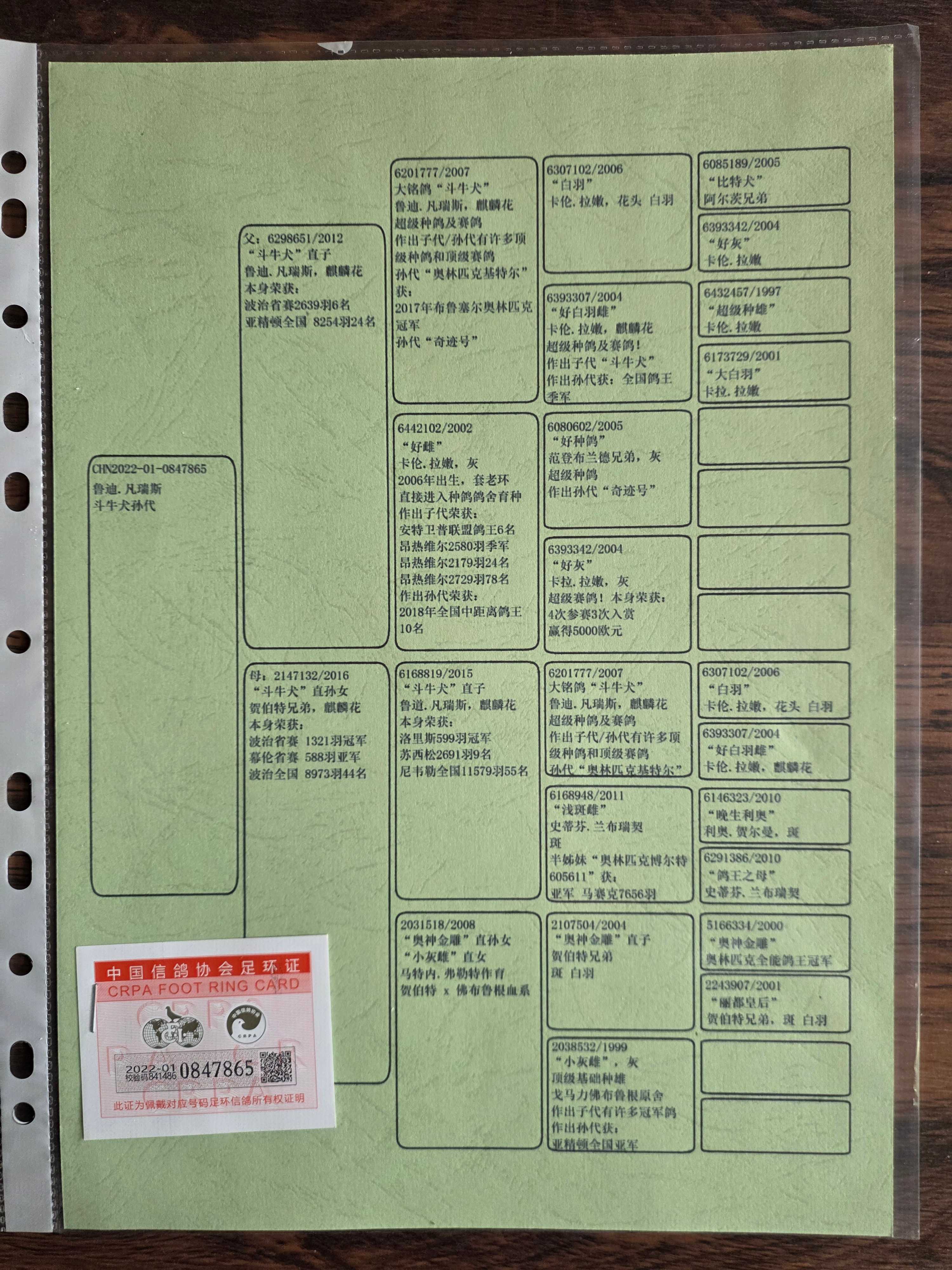 1637692 血统:“无敌利蒙治近亲年轻635(鸽王号直孙) ¥0元 0次