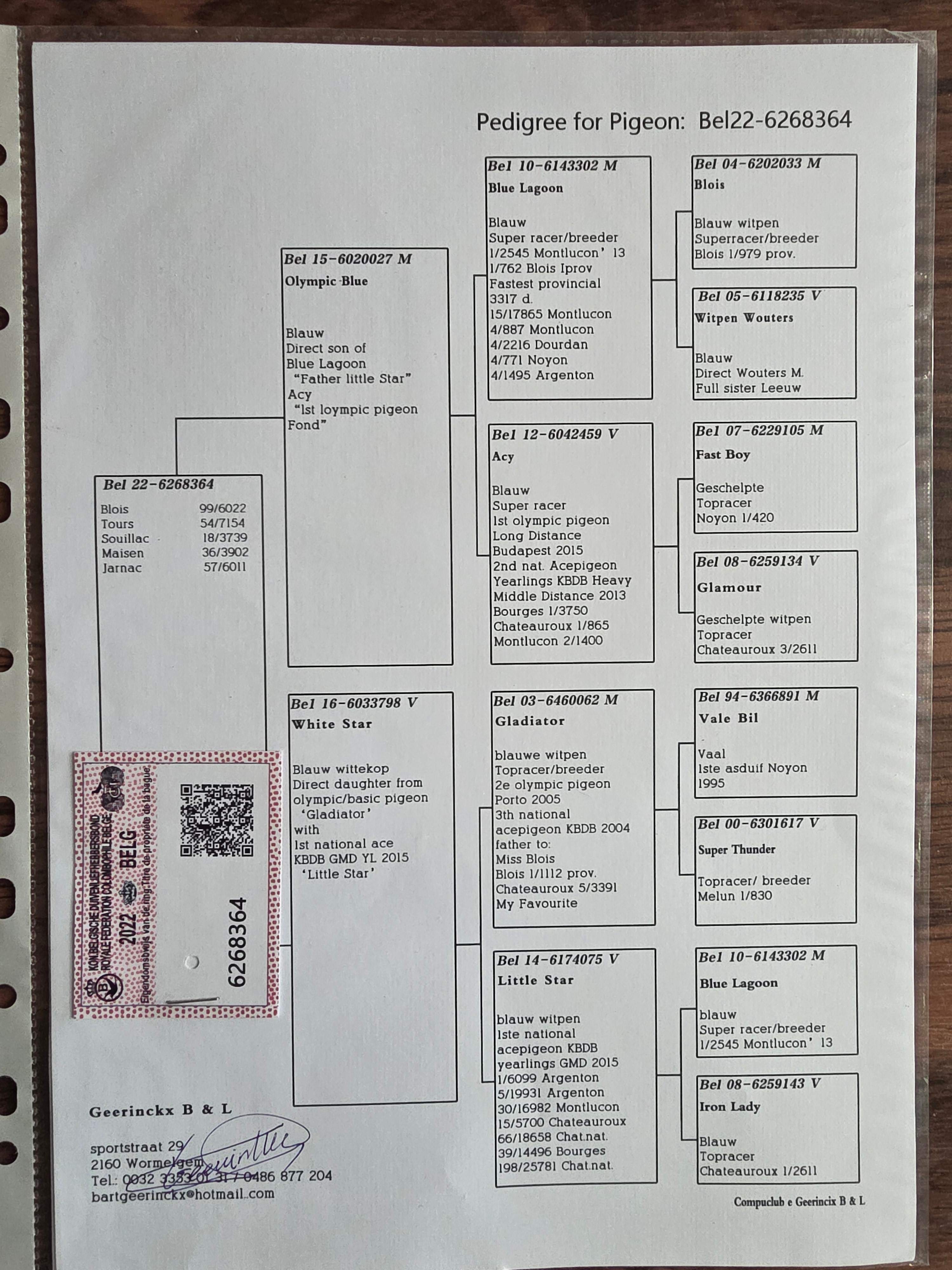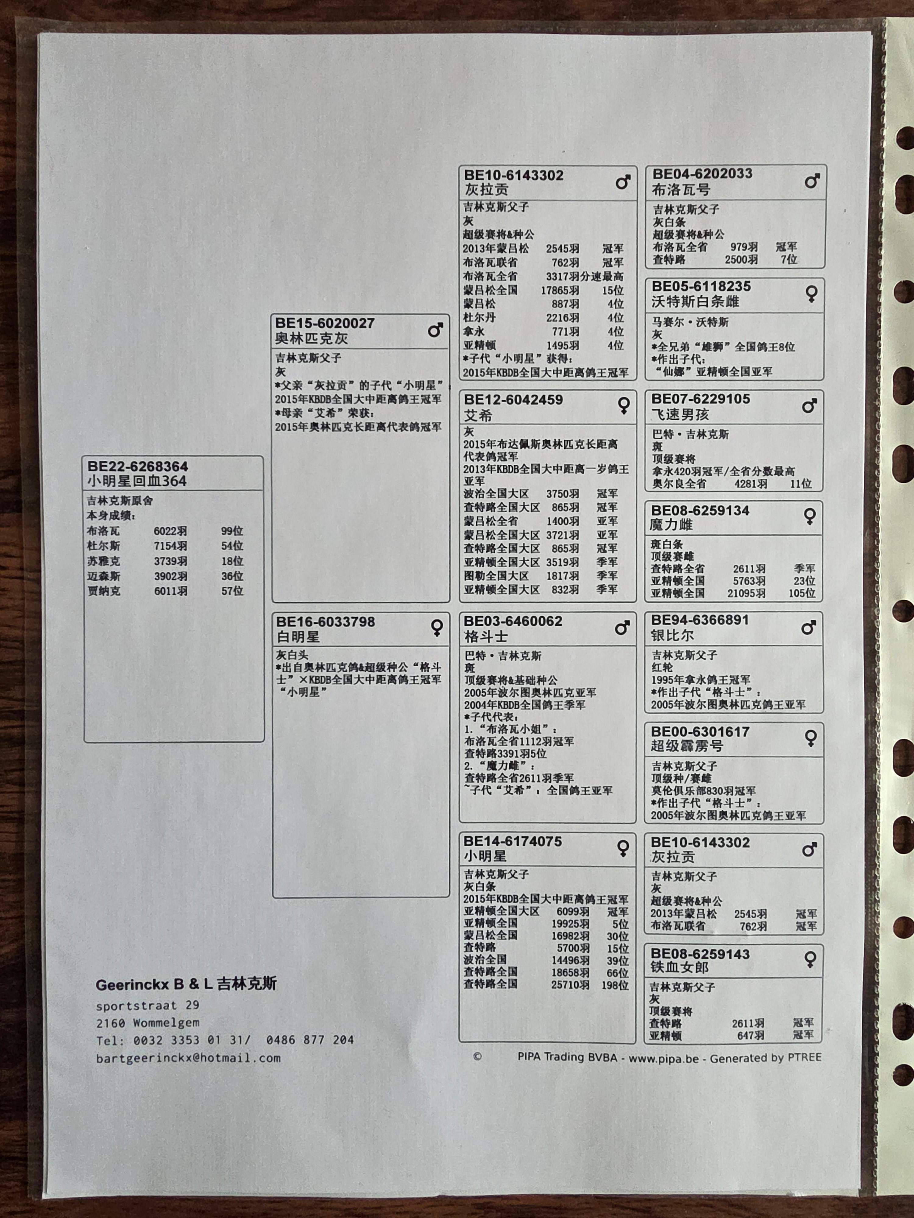 1637743 血统:无敌利蒙治近亲(年轻635-鸽王号直孙) ¥0元 0次