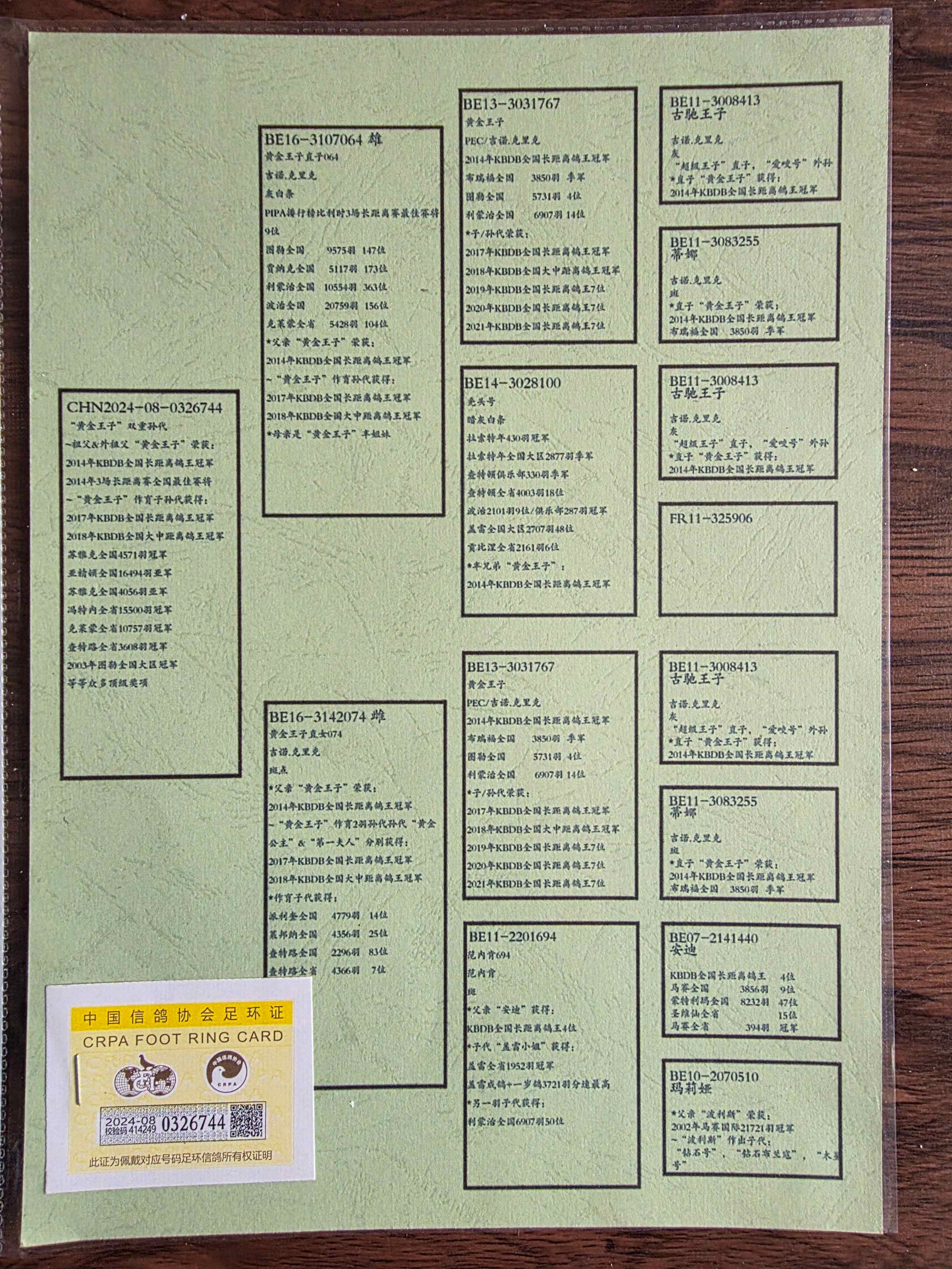 1637743 血统:无敌利蒙治近亲(年轻635-鸽王号直孙) ¥0元 0次