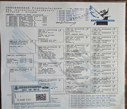 1637743 血统:无敌利蒙治近亲(年轻635-鸽王号直孙) ¥0元 0次