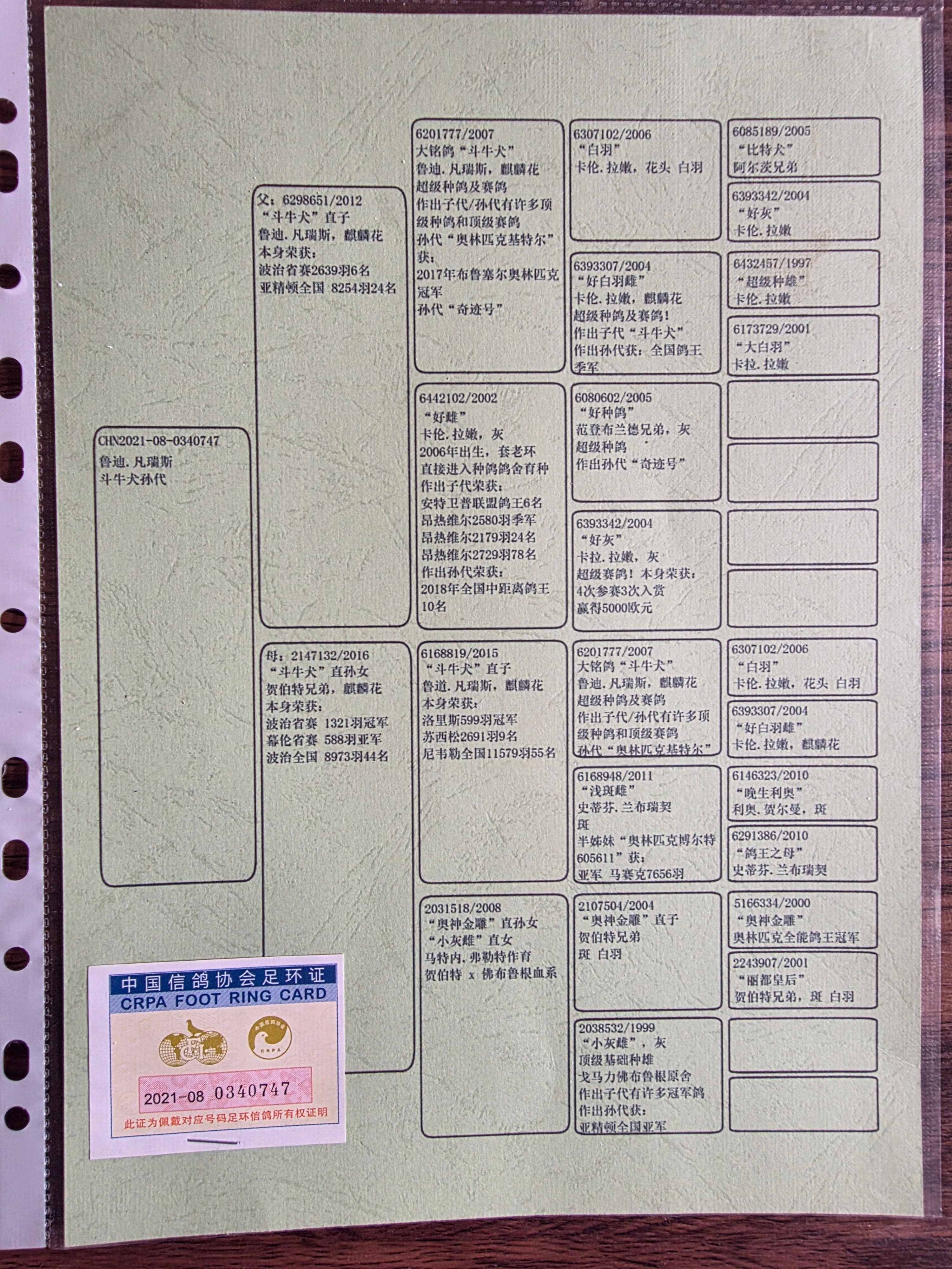 1637743 血统:无敌利蒙治近亲(年轻635-鸽王号直孙) ¥0元 0次