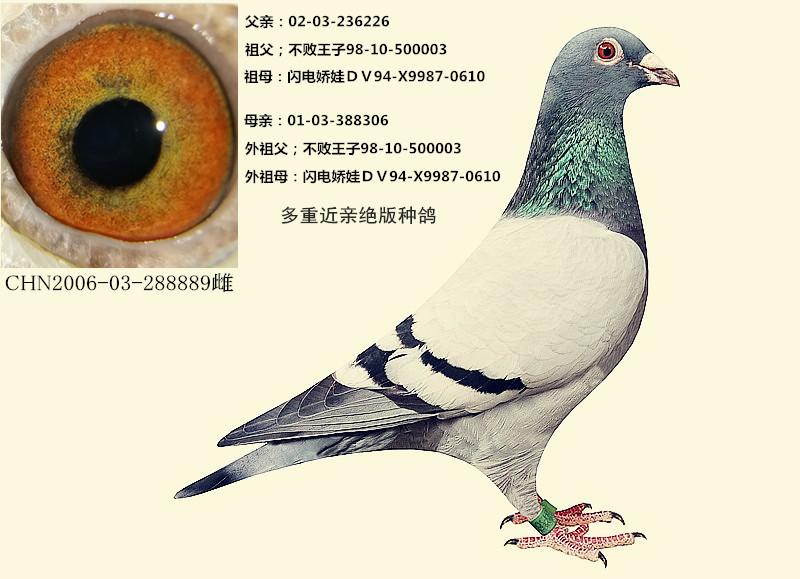 | 1637766 | 退役种鸽、石春宝桑杰士“闪电娇娃X不败王子”近亲 | ¥0元 | 0次 |
