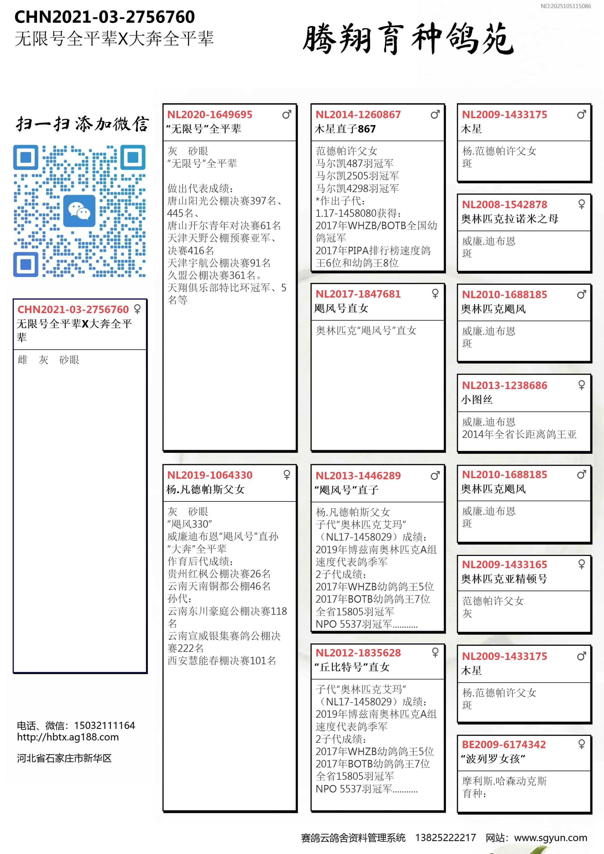 | 1637766 | 退役种鸽、石春宝桑杰士“闪电娇娃X不败王子”近亲 | ¥0元 | 0次 |