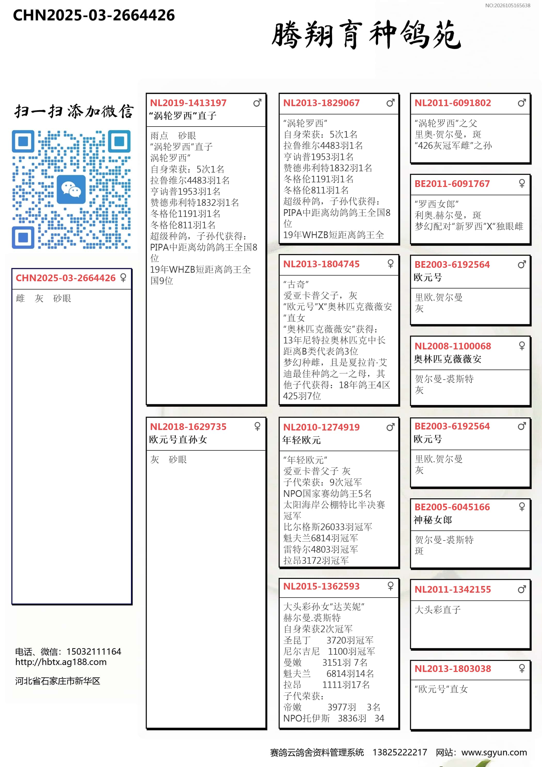 | 1637761 | 长城鸽业“零缺陷”近亲直孙 | ¥300元 | 1次 |