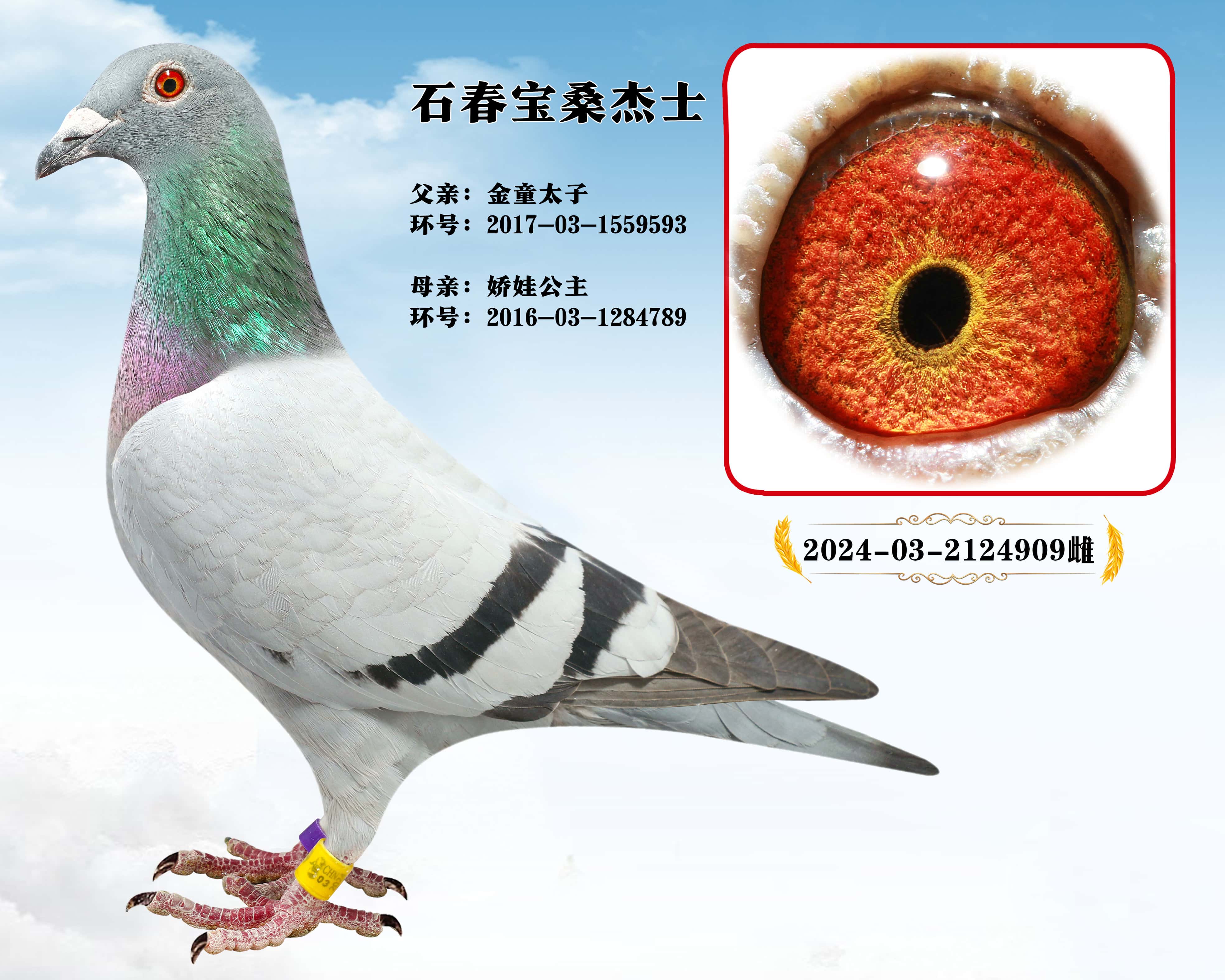 | 1637764 | 功勋一线种鸽、石春宝桑杰士“闪电娇娃X不败王子” | ¥800元 | 0次 |