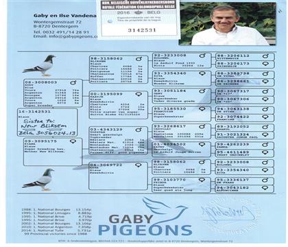 齐娅娜 盖比.凡德纳比 灰 超级种母,作出子代: 1.“新闪电号”:图勒全国5731羽冠军/11707羽分速最高 波治地区冠军/全省3039羽5位 2.“凯恩”: