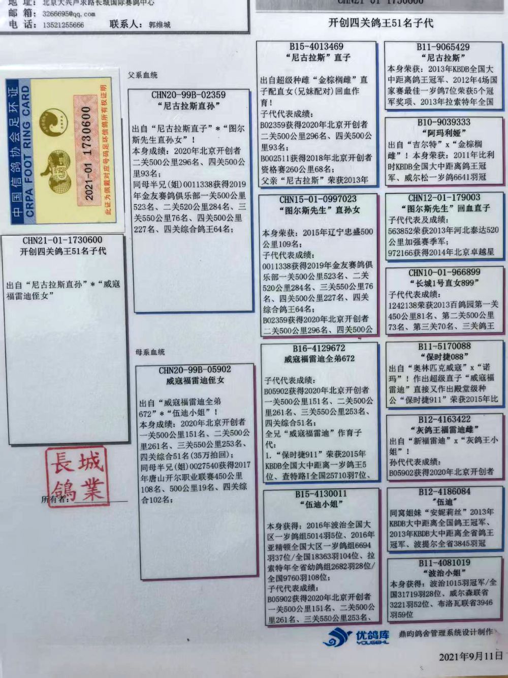 所有拍卖赛鸽,变换鸽舍及周边环境;如出现健康问题:发鸽之日起7日内联系;如有做育问题:请在发鸽之日起1个月内联系反馈。请鸽友收到鸽子实验配对做育,逾期本鸽业将不负责。不要1-2年后再联系我们反馈问题,时间长了,无法断定是在本舍还是您的鸽舍出现的问题。