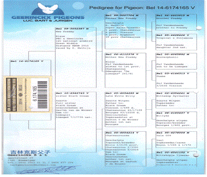 黄金王子 吉诺.克里克 (在PIPA网以360000欧元拍出,曾打破世界记录!)2014年KBDB全国长距离鸽王冠军