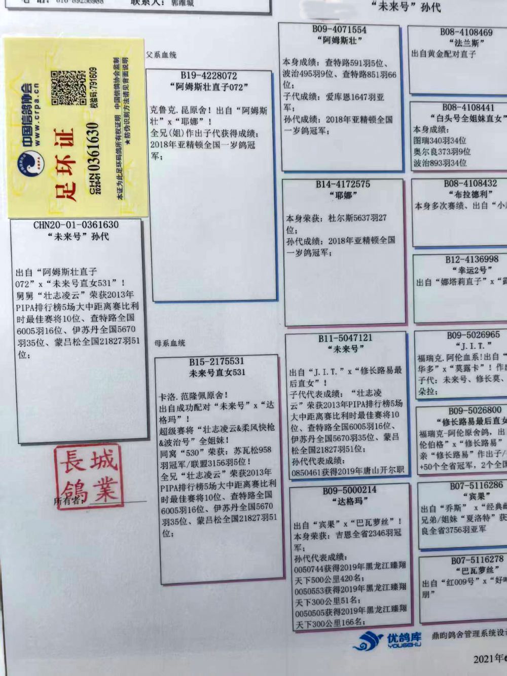 所有拍卖赛鸽,变换鸽舍及周边环境;如出现健康问题:发鸽之日起7日内联系;如有做育问题:请在发鸽之日起1个月内联系反馈。请鸽友收到鸽子实验配对做育,逾期本鸽业将不负责。不要1-2年后再联系我们反馈问题,时间长了,无法断定是在本舍还是您的鸽舍出现的问题。