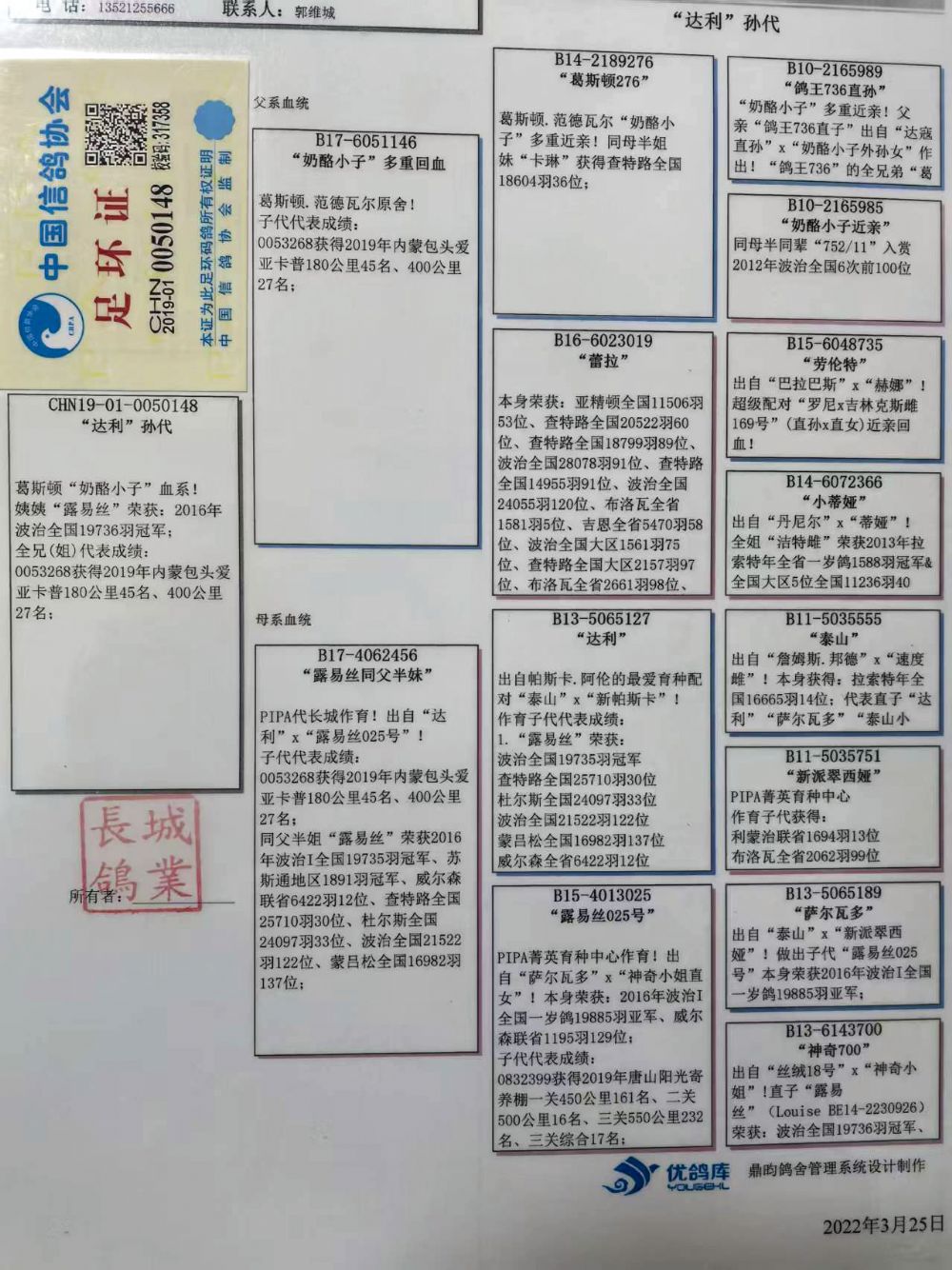 - 当前查看拍卖鸽:2.达利孙代m.0050148