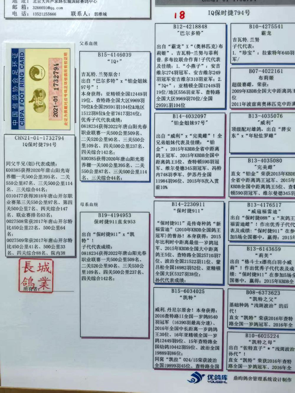 所有拍卖赛鸽,变换鸽舍及周边环境;如出现健康问题:发鸽之日起7日内联系;如有做育问题:请在发鸽之日起1个月内联系反馈。请鸽友收到鸽子实验配对做育,逾期本鸽业将不负责。不要1-2年后再联系我们反馈问题,时间长了,无法断定是在本舍还是您的鸽舍出现的问题。