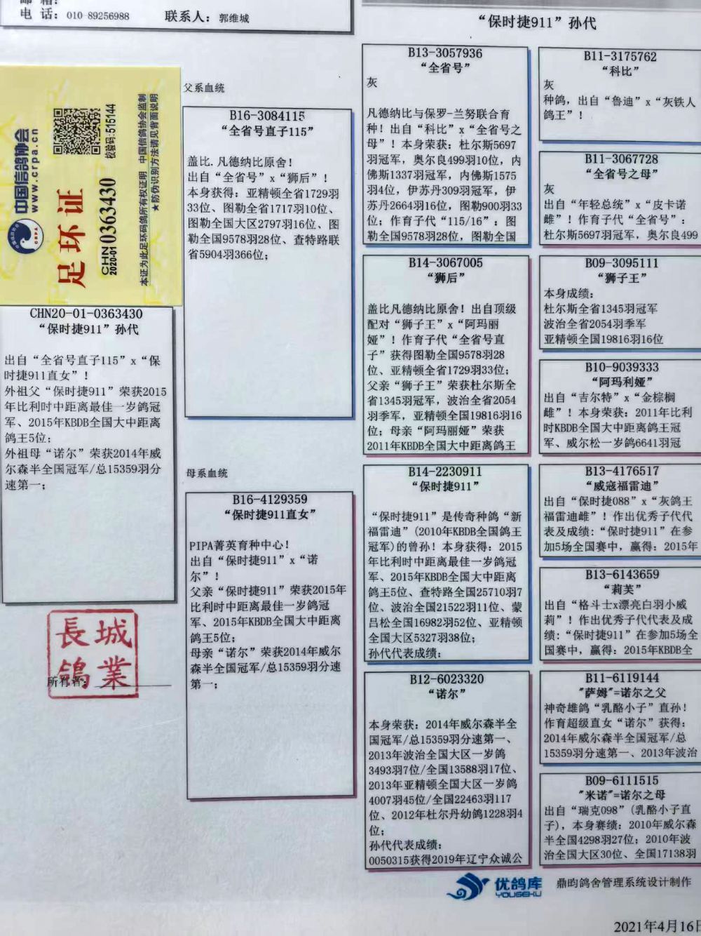 所有拍卖赛鸽,变换鸽舍及周边环境;如出现健康问题:发鸽之日起7日内联系;如有做育问题:请在发鸽之日起1个月内联系反馈。请鸽友收到鸽子实验配对做育,逾期本鸽业将不负责。不要1-2年后再联系我们反馈问题,时间长了,无法断定是在本舍还是您的鸽舍出现的问题。