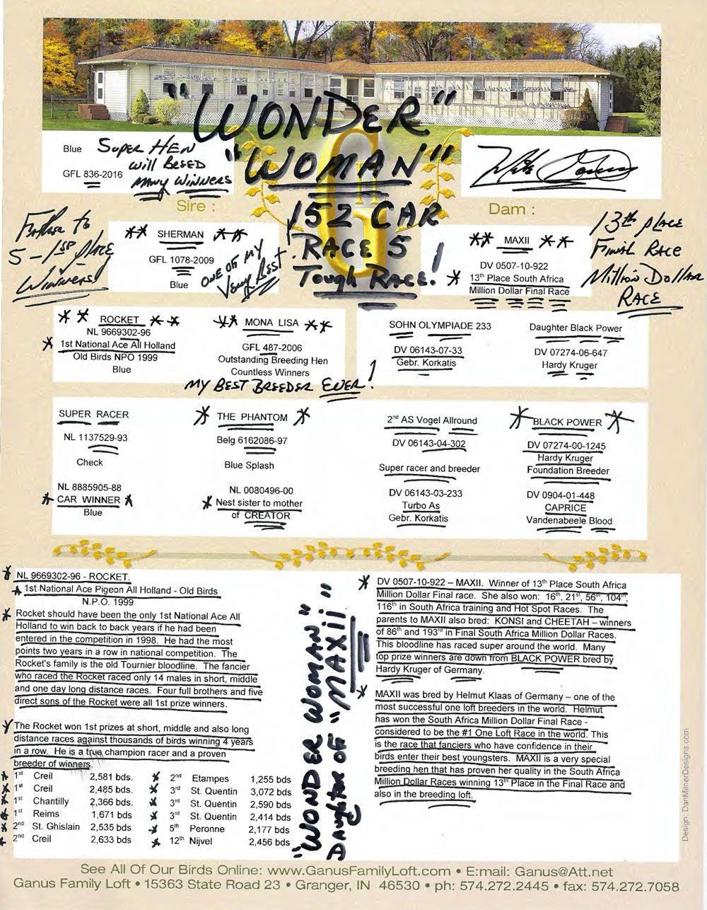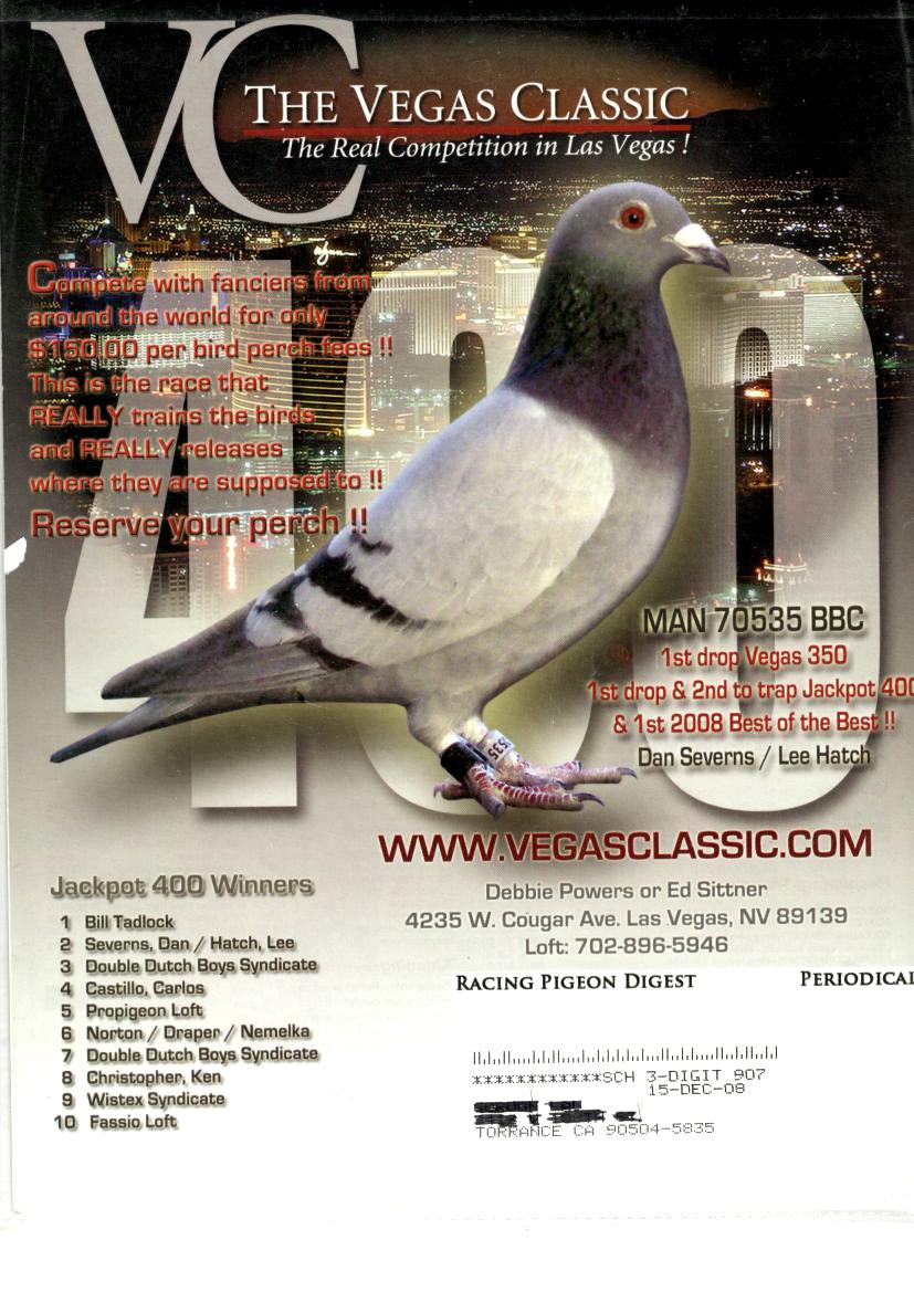 美国维加斯公棚鸽王冠军,500公里并列亚军,560公里5名,640公里亚军,公棚鸽王冠军