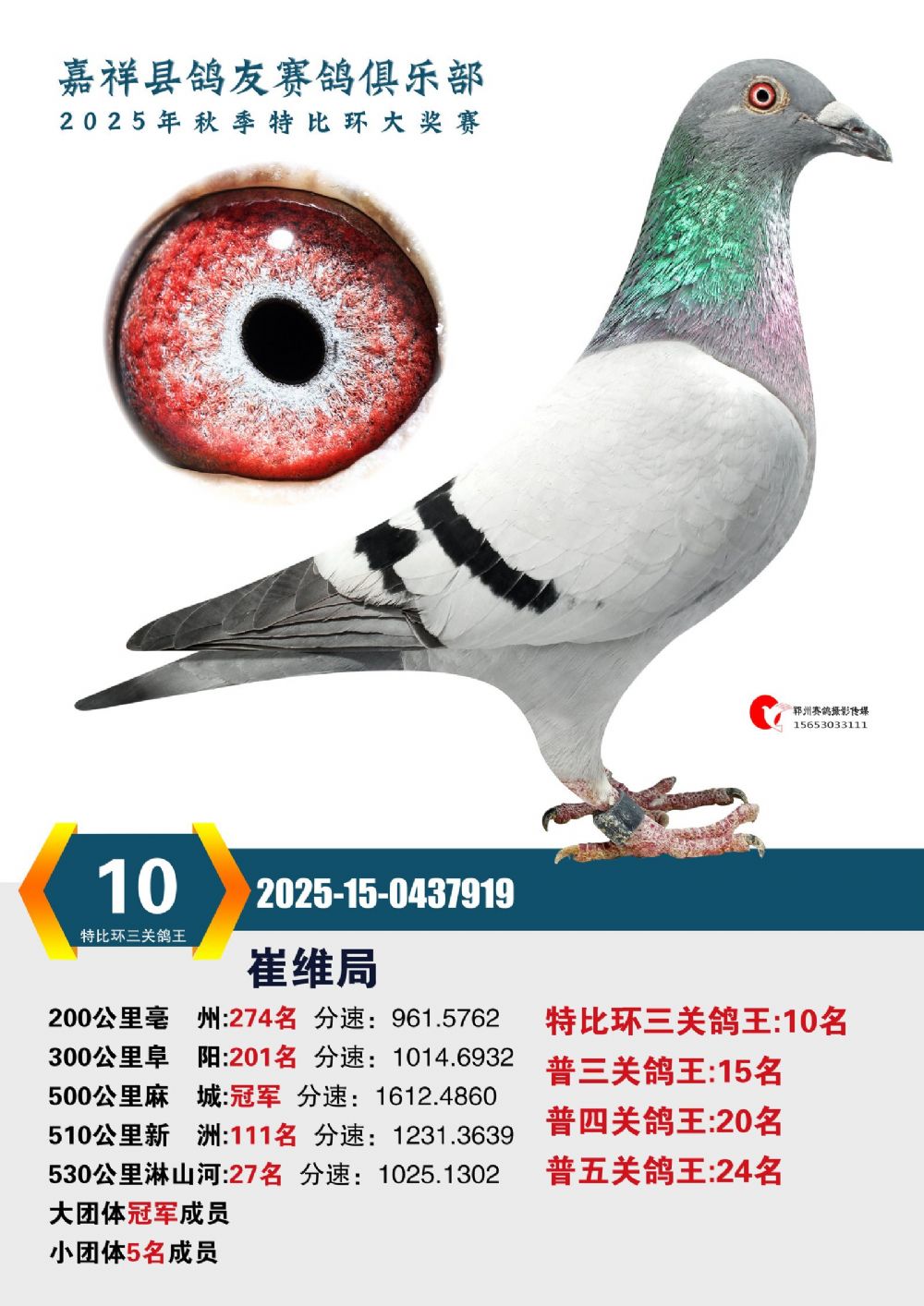 | 1638167 | 特比环三关鸽王15名 | ¥300元 | 0次 |
