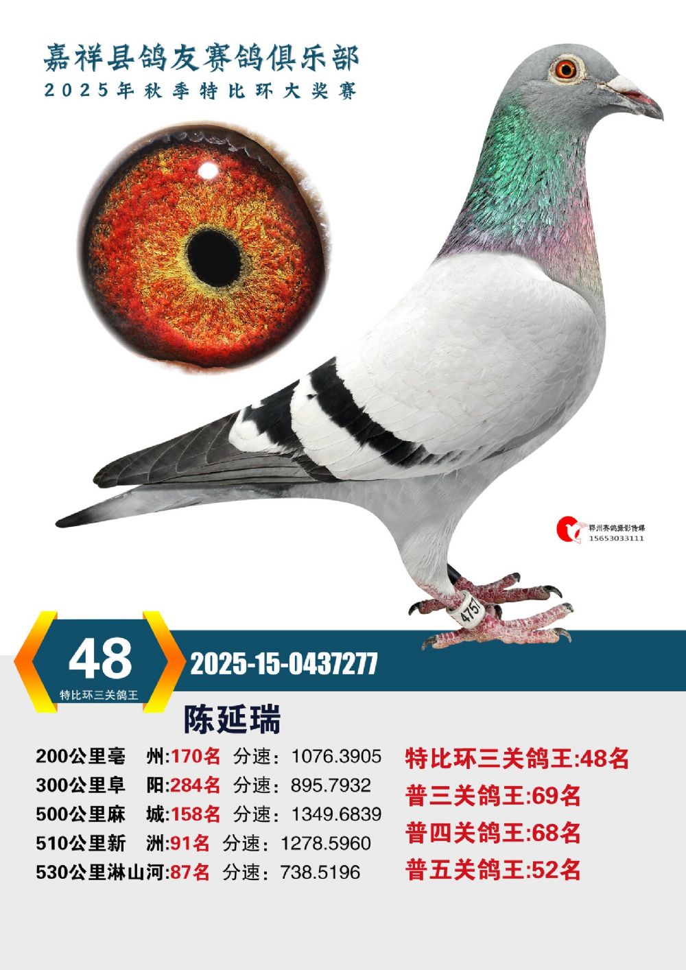 | 1638167 | 特比环三关鸽王15名 | ¥300元 | 0次 |