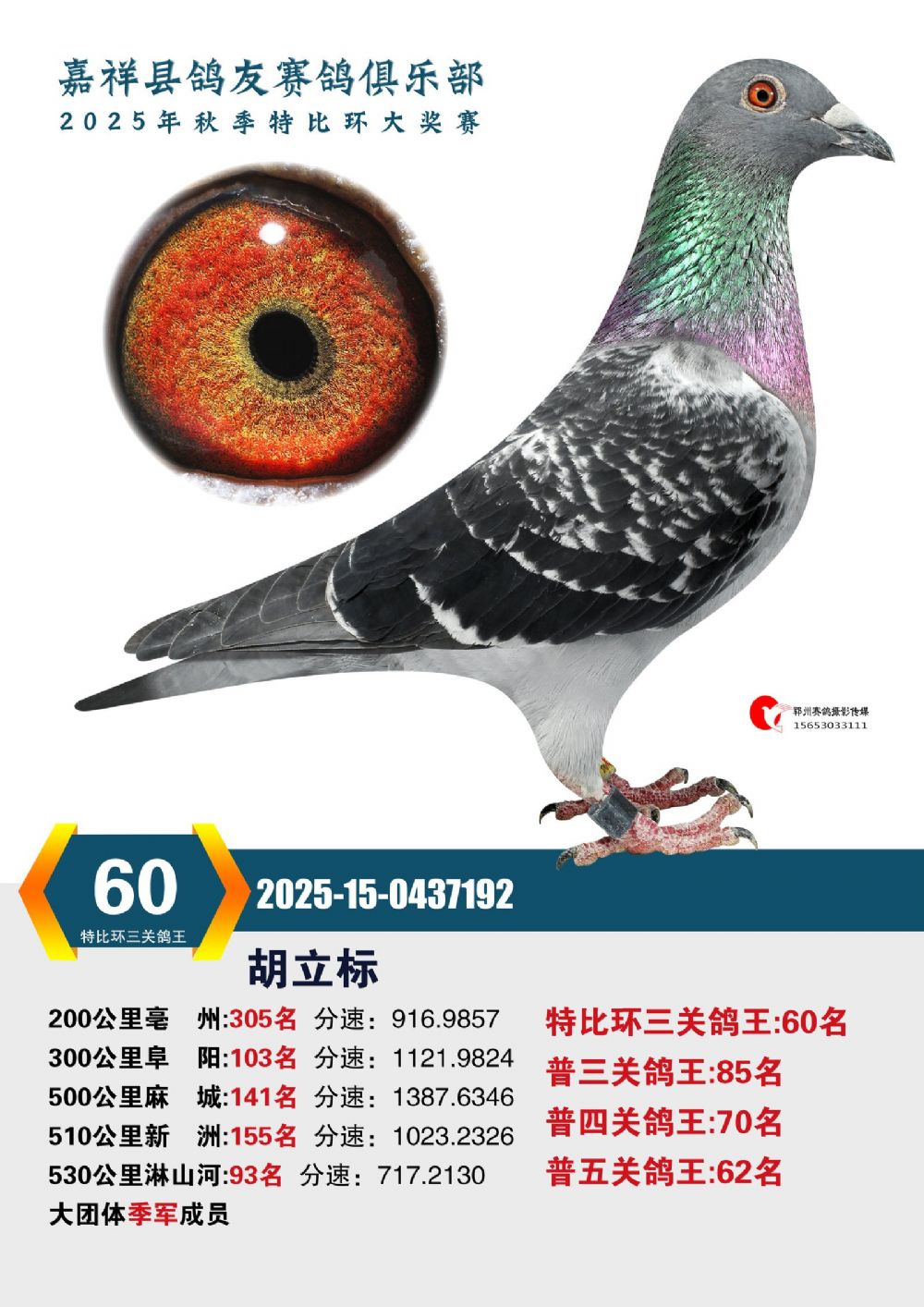 | 1638167 | 特比环三关鸽王15名 | ¥300元 | 0次 |