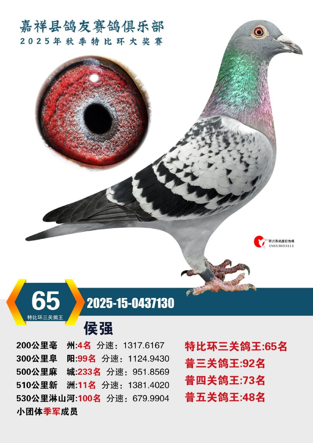 | 1638167 | 特比环三关鸽王15名 | ¥300元 | 1次 |