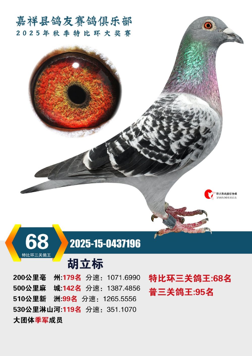| 1638167 | 特比环三关鸽王15名 | ¥800元 | 3次 |