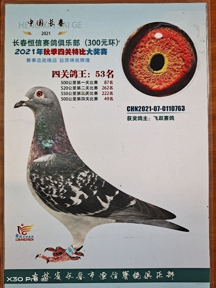 2021年燕青公棚180公里195,300公里81(指定鸽11取一,22取一,大家乐获奖)500公里425名,745名,加站赛6名(指定鸽获奖)。2021年大安信和公棚300公里254,420公里102(11取一,22取一,大家乐获奖)500公里43名(指定鸽获奖4W加手机一部)三关鸽王八位。2022年豪飞公棚双关综合鸽王亚军,大安信和公棚决赛243名,黑龙江伟路公棚457名,恒信院内五关鸽王大奖赛鸽王42位,61位,双关综合鸽王4位(获奖10W)。2023年大安信和公棚决赛194名(三关综合鸽王冠军),获奖金8W,2024年伟路公棚159名,河北唐山春兴公棚101名(3关综合鸽王季军),唐山阳光公棚501名,大安信和公棚加站赛7名,内蒙古金翔赛鸽公棚865名……1996年-2024年本舍地方赛及公棚获奖无数......