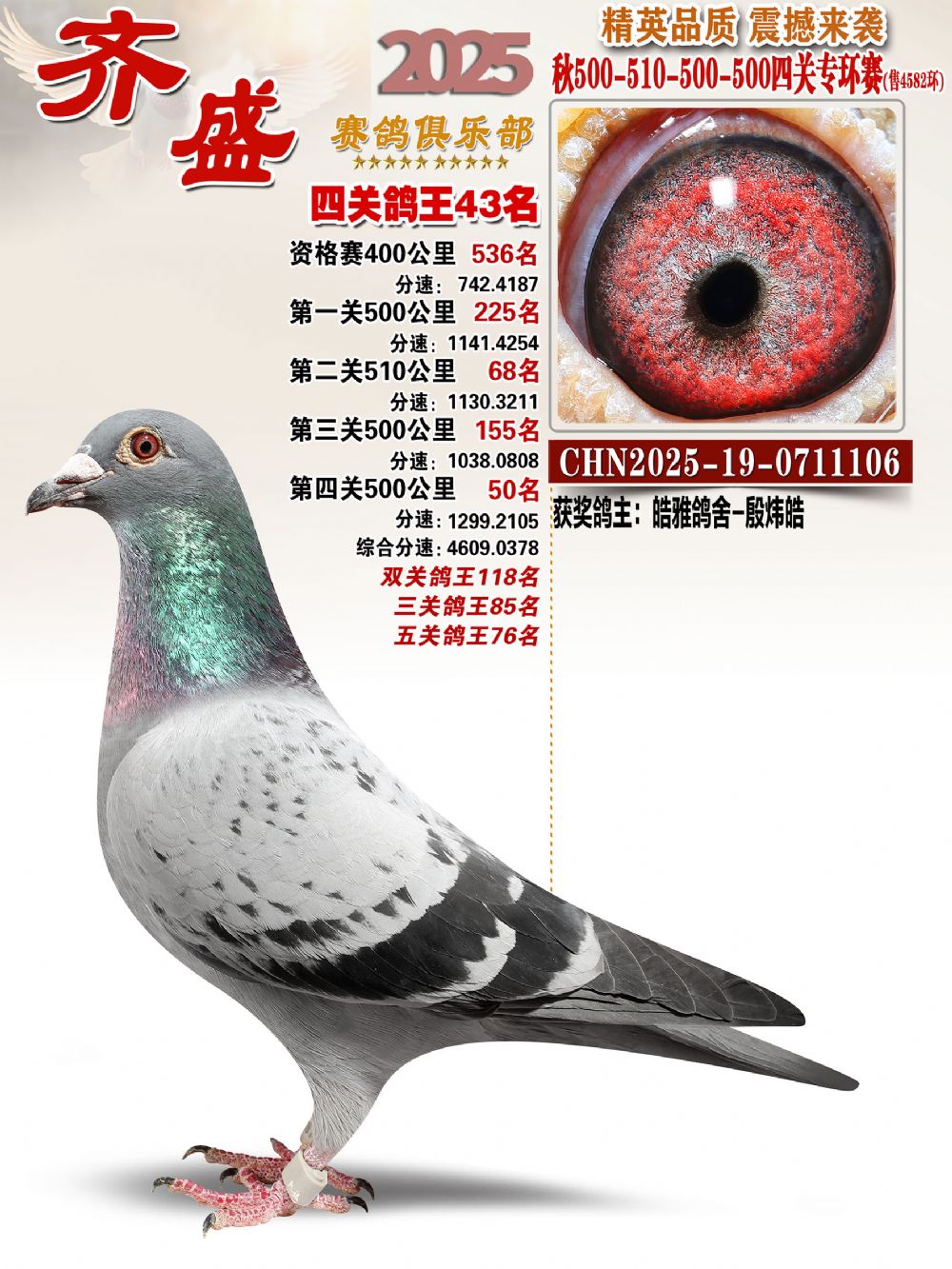 齐盛幼鸽专环43名