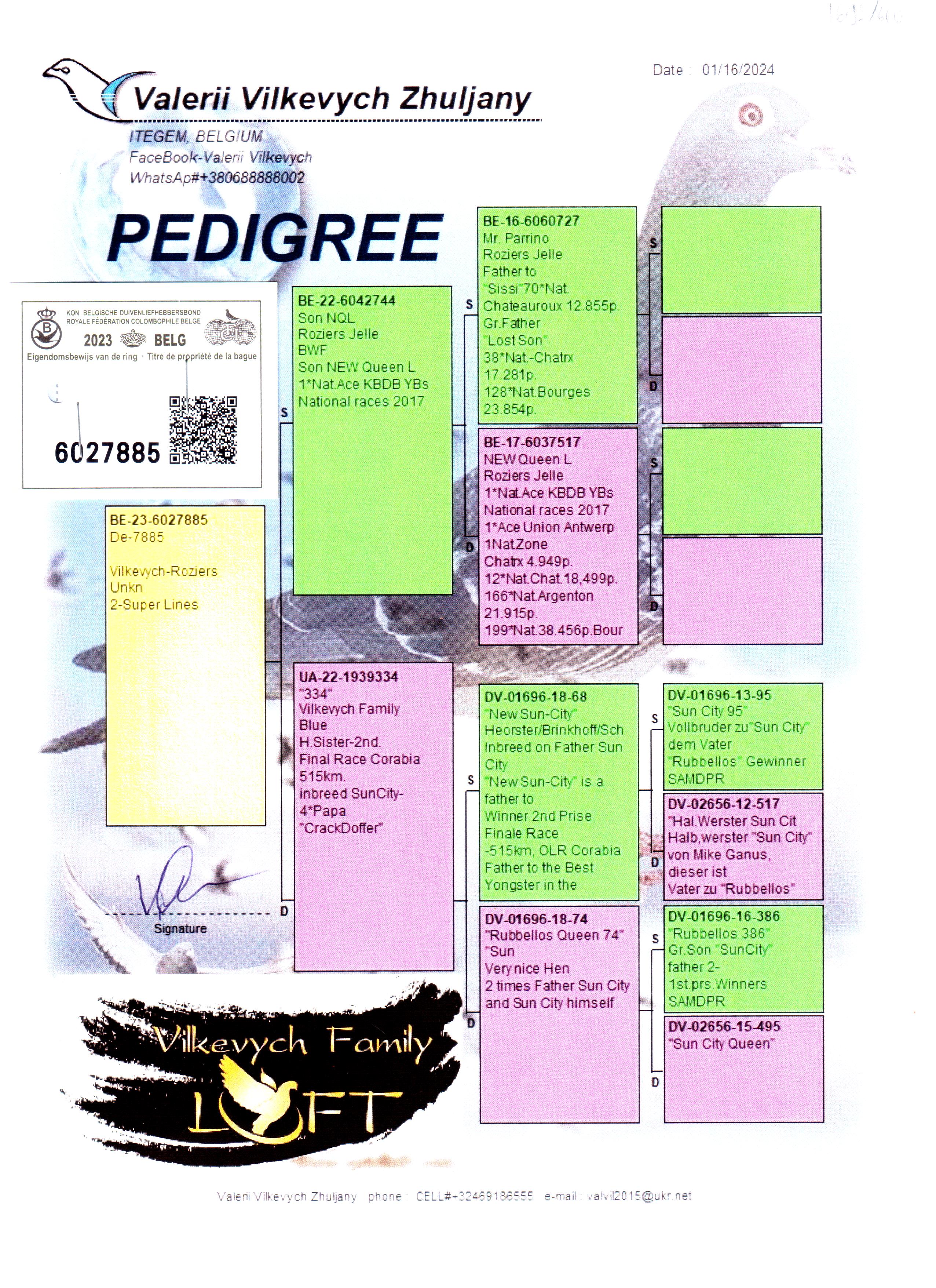 比利时02年中距离省鸽王冠军,比利时02年中距离KBDB国家鸽王5名,比利时02年JOURNAL DUIVENKRANT中距离鸽王冠军,奥尔良亚军962羽,奥尔良3名624羽,木伦9名1897羽,科雷根5名3172羽…